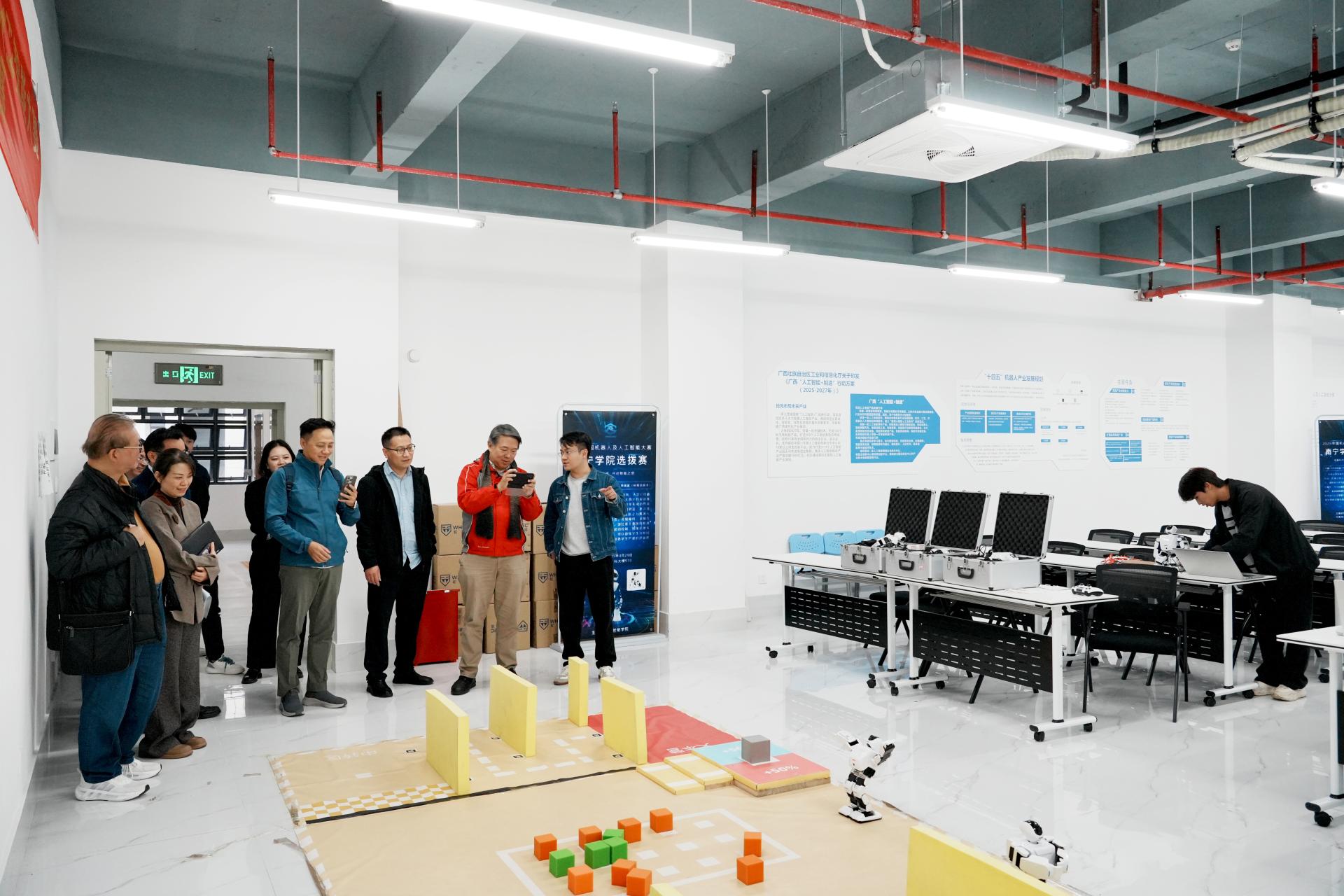 当日16时许,考察团在华为数字技术产业学院院长刘泉生、校长办公室副主任李鹂的陪同下,参观了校园及人工智能实验室,详细了解学校AI技术研发、实训平台建设成果,肯定其产业需求融入教学的办学模式,重点关注AI行业应用场景与落地成效。