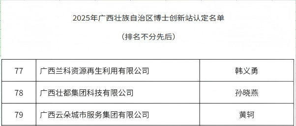 近日,根据自治区科协、自治区党委统战部、自治区工商联《关于开展2025年广西壮族自治区博士创新站建设申报认定工作的通知》(桂科协学发〔2025〕29号),经自主申报、专家评审等严格程序,学校交通运输学院韩义勇博士、交通运输学院孙晓燕博士、数字经济学院黄轲博士等3个博士团队分别联合广西兰科资源再生利用有限公司、广西壮都集团科技有限公司、广西云朵城市服务集团有限公司获批广西博士创新站。