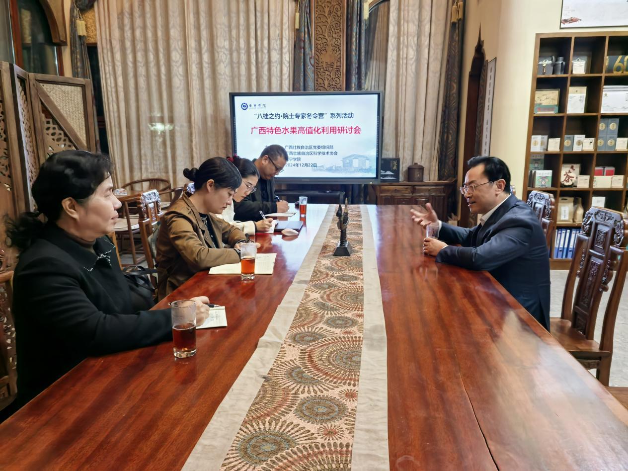 八桂之约·院士专家冬令营”暨广西特色水果高值化利用院士行:中国工程院刘仲华院士(右一)指导工作