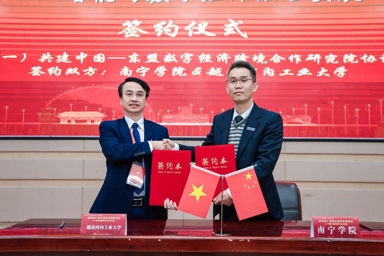 论坛期间,qm球盟会与越南河内工业大学签署共建中国东盟数字经济跨境合作研究院协议,与广西桂物智慧科技有限公司签署共建供应链金融产业学院合作协议。此次签约标志着学校在推进国际合作、深化产教融合方面迈出了坚实步伐,将进一步整合各方资源,搭建更高水平的人才培养与科研创新平台,助力数字经济领域的人才培育与产业升级。