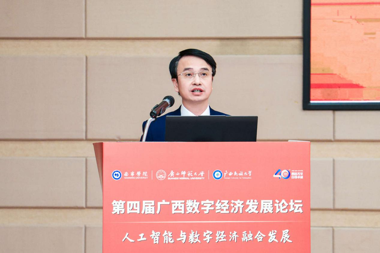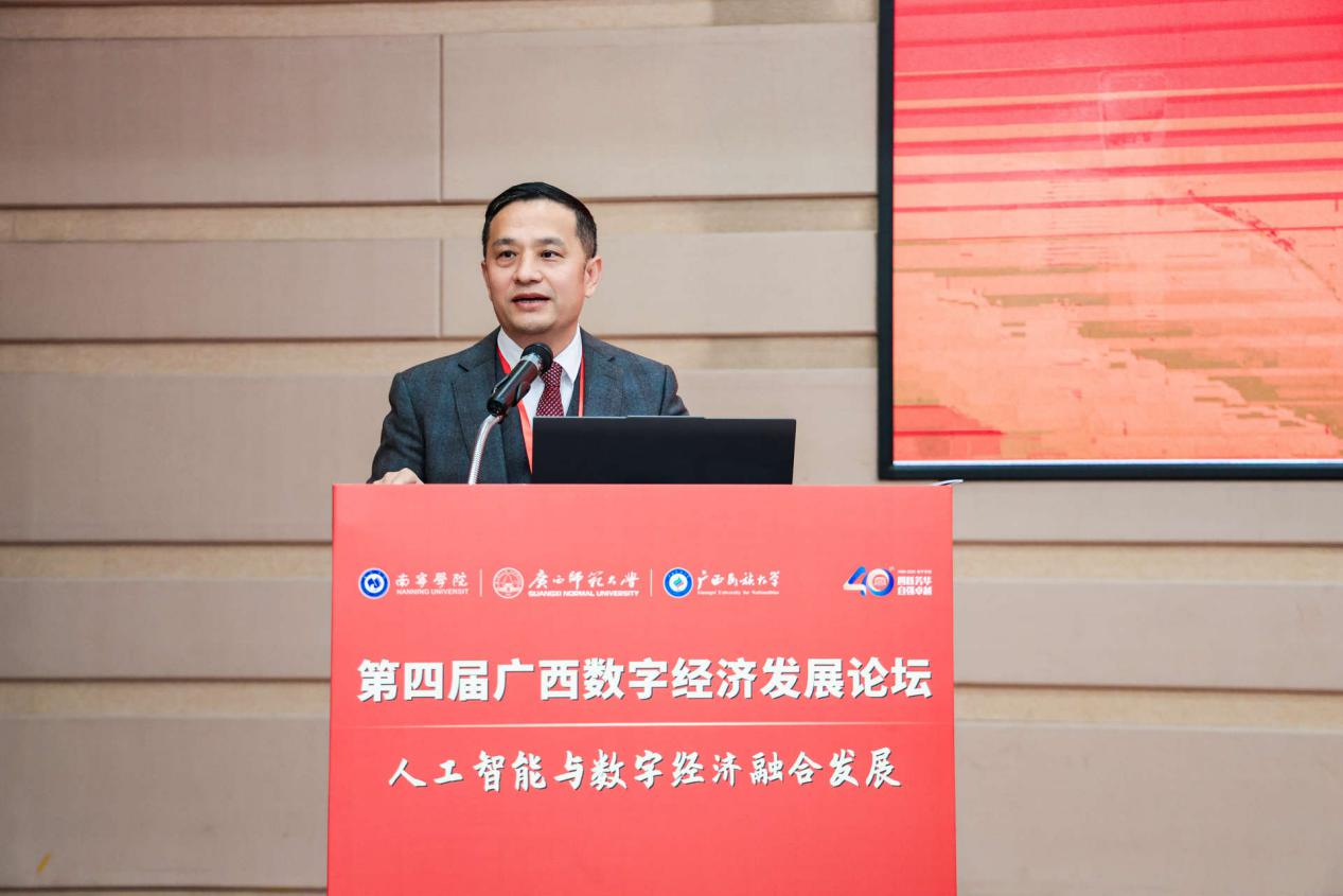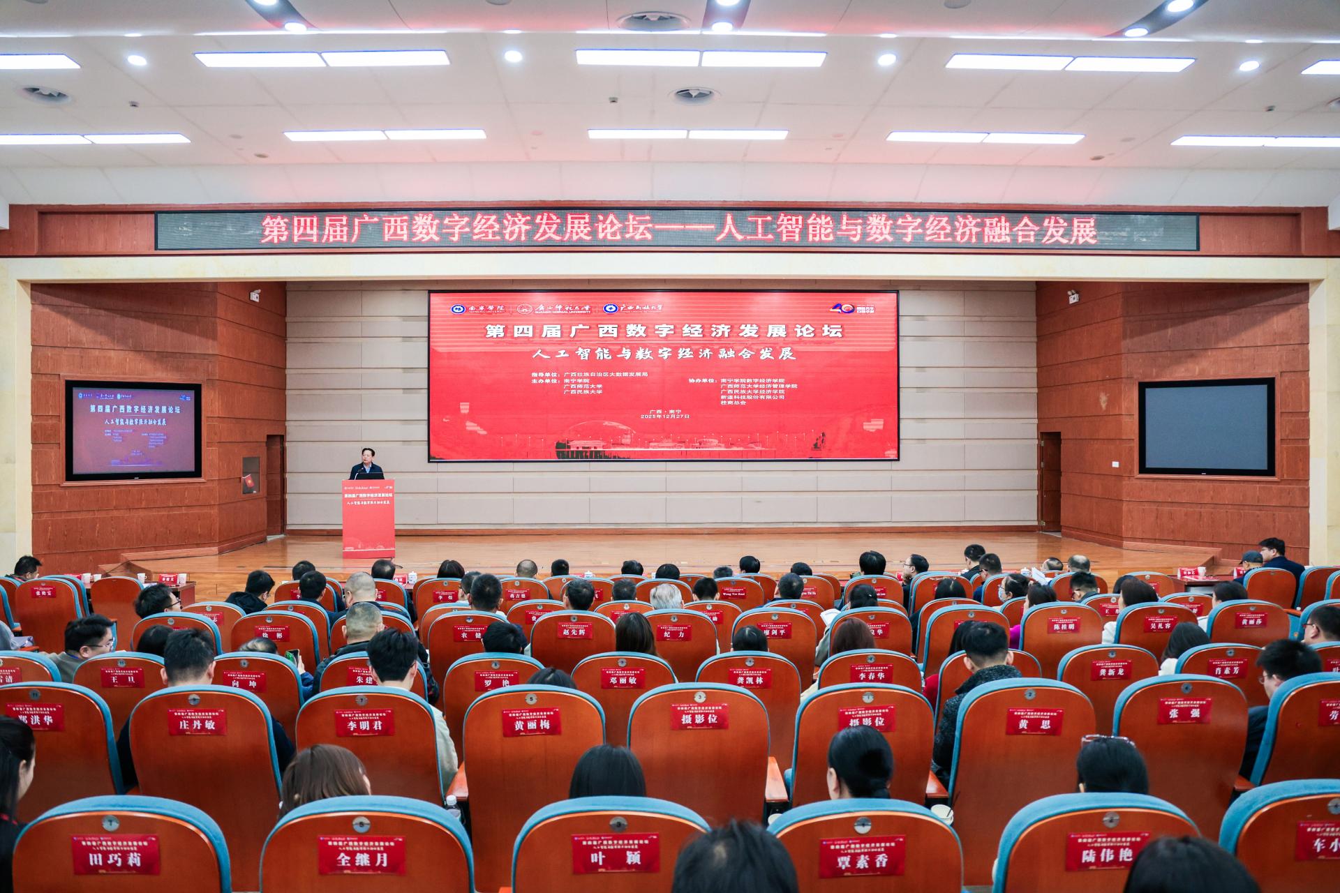 2025年12月27日,在广西壮族自治区大数据发展局指导下,qm球盟会联合广西师范大学、广西民族大学共同主办的第四届广西数字经济发展论坛在qm球盟会圆满落幕。本次论坛的举办,正是深入贯彻落实党的二十大关于“建设现代化产业体系”“加快发展数字经济,促进数字经济和实体经济深度融合”战略部署,积极响应党的二十届四中全会关于“加快推进数字中国建设,推动数字经济与实体经济深度融合,培育壮大人工智能等新兴产业”的号召,以及紧扣2025年中央经济工作会议关于“推动人工智能技术在全行业、全链条的赋能应用,打造具有国际竞争力的数字产业集群”工作要求的具体行动。