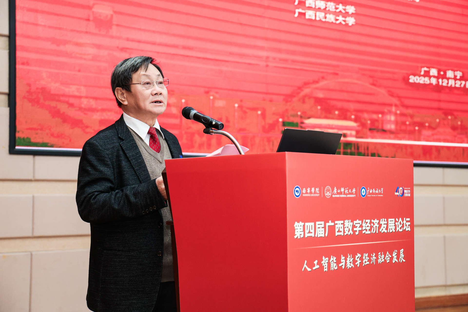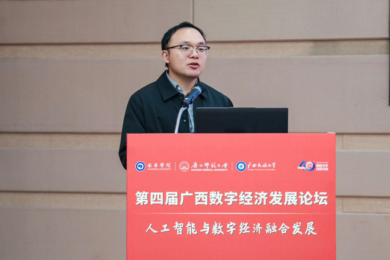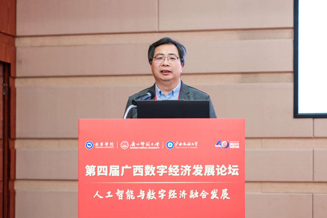 2025年12月27日,在广西壮族自治区大数据发展局指导下,qm球盟会联合广西师范大学、广西民族大学共同主办的第四届广西数字经济发展论坛在qm球盟会圆满落幕。本次论坛的举办,正是深入贯彻落实党的二十大关于“建设现代化产业体系”“加快发展数字经济,促进数字经济和实体经济深度融合”战略部署,积极响应党的二十届四中全会关于“加快推进数字中国建设,推动数字经济与实体经济深度融合,培育壮大人工智能等新兴产业”的号召,以及紧扣2025年中央经济工作会议关于“推动人工智能技术在全行业、全链条的赋能应用,打造具有国际竞争力的数字产业集群”工作要求的具体行动。