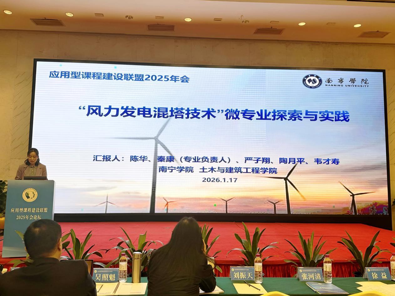 在微专业分享环节,学校土木与建筑工程学院副院长陈华以《“风力发电混塔技术”微专业探索与实践》为题进行交流,引发与会嘉宾关注与探讨。陈华副院长介绍,该微专业的设立紧扣国家“双碳”战略部署,精准对接风电产业高质量发展对核心技术人才的实际需求。建设过程中,积极探索“敏捷响应・精准育人・就业贯通”的培养模式:通过“访企拓岗”深入行业一线,准确把握风力发电混塔技术领域的岗位缺口;深化校企合作,将企业真实项目与行业技术标准融入课程体系;依托“定向班+微专业”双轨培养机制,形成“选拔-培养-实习-就业”的全链条人才输送路径。目前,该微专业已招收培养学员500余人,毕业生就业占比位居各细分领域前列,凭借扎实的专业技能和实操能力获风电龙头企业的认可,成为产教融合育人的成功范例。