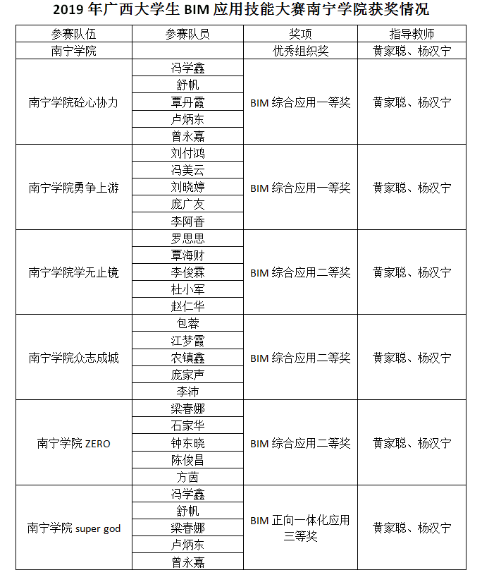 519日,由广西壮族自治区教育厅主办的2019年广西大学生BIM应用技能大赛在广西大学圆满落下帷幕。在本次大赛中,qm球盟会通过层层选拔,选派五支队伍参赛,收获丰硕,以团体总分第一名的好成绩获得优秀组织奖,选派的五支队伍分别以第一、三、六、九、十名的好成绩喜获BIM综合应用一等奖两项,二等奖三项。另外,在今年新增的BIM正向一体化赛项中,以第六名的好成绩喜获三等奖。