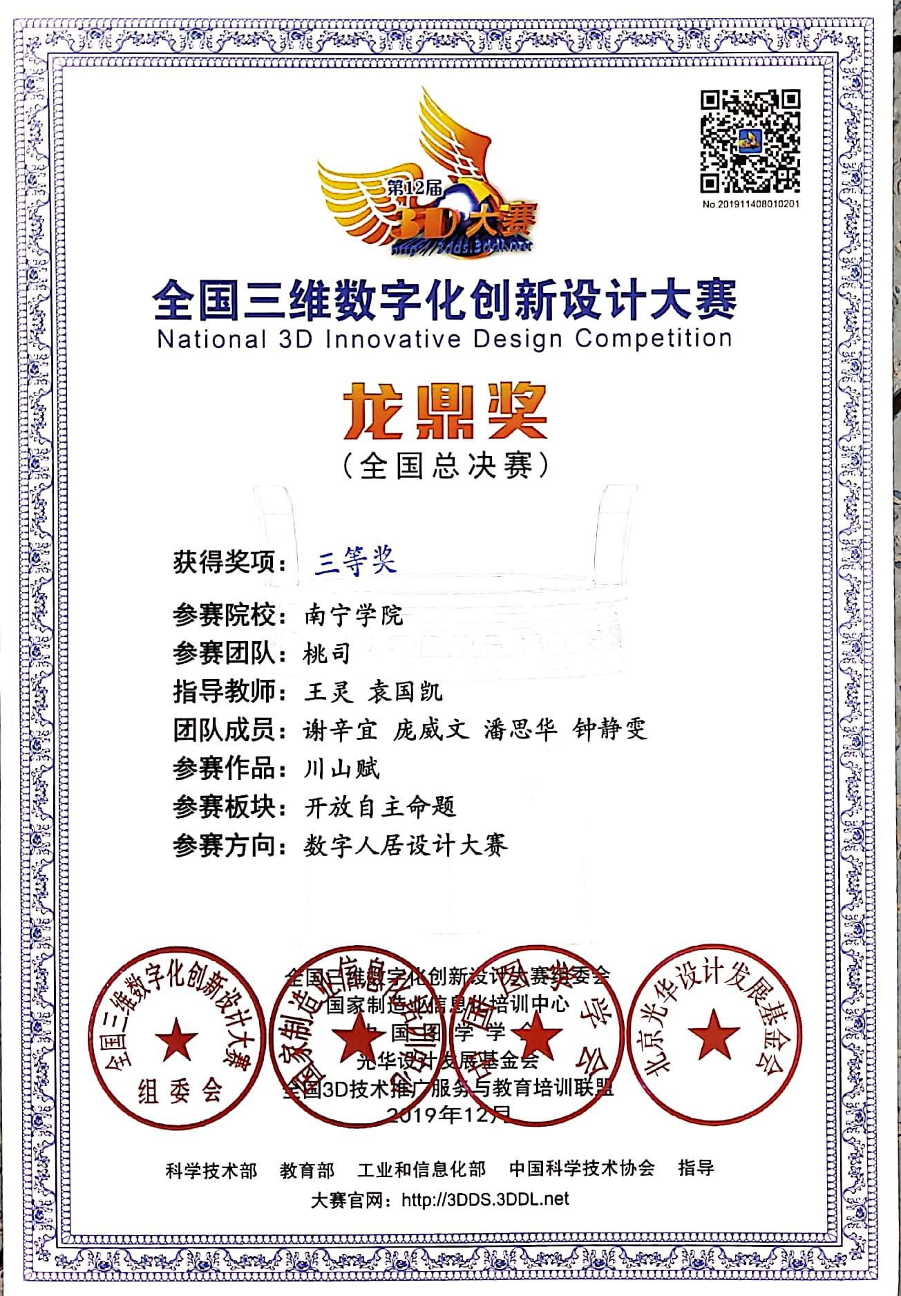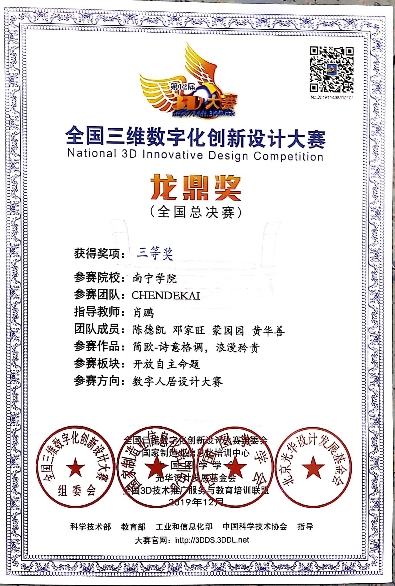 【喜讯】qm球盟会在第12届全国三维数字创新设计大赛喜获佳绩