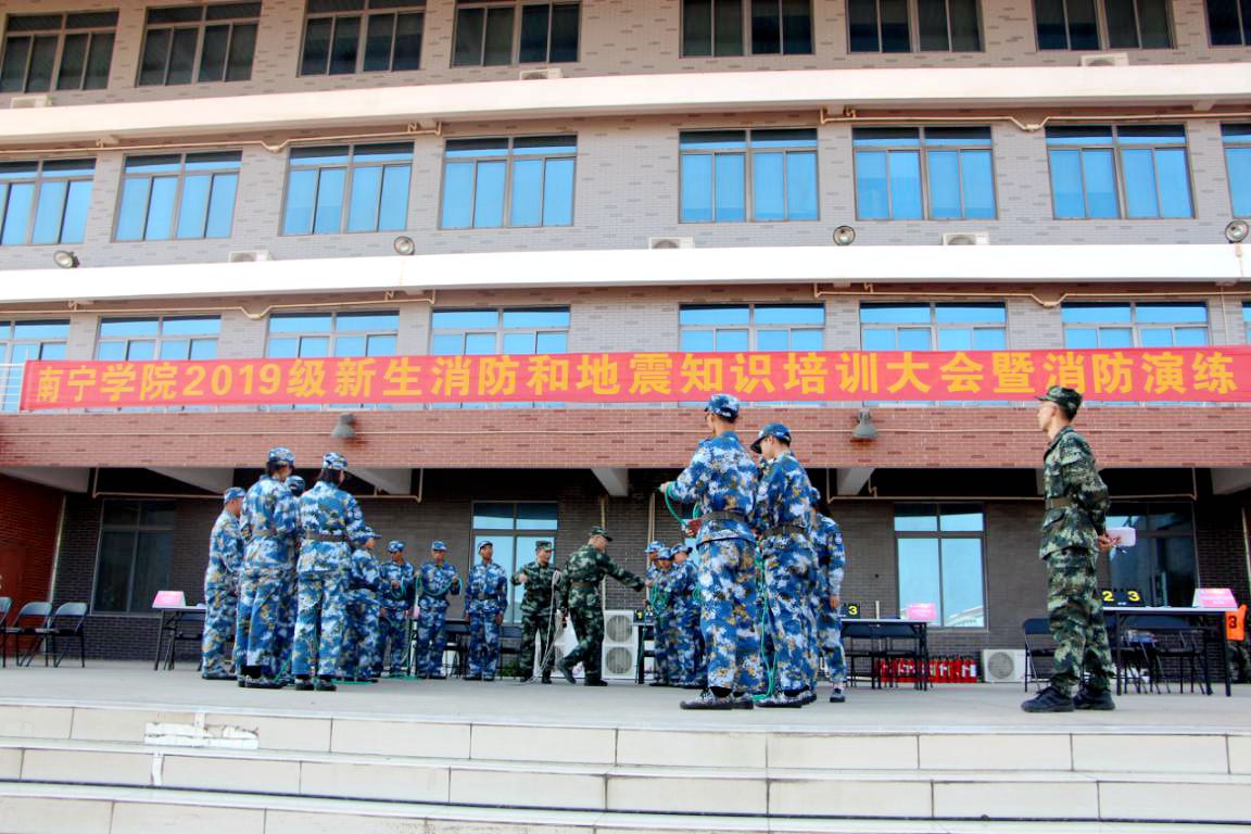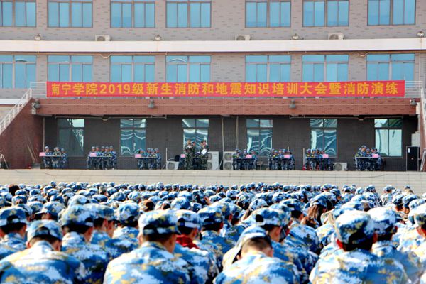 为加强安全管理,提高2019级新生在突发灾害事故中逃生、自救、互救的技能,学2019年12月11下午开展2019级新生消防和地震安全知识培训和演练活动。学工处副处长韦超才,后勤基建处副处长凌海妹,各二级学院学工科科长、辅导员、图书馆全体人员、后勤基建处相关科室人员、安保人员及2019级新生等3800多参加此次活动,培训和演练活动由南宁市首安消防安全职业培训学校的教官团队全程指导、协办。