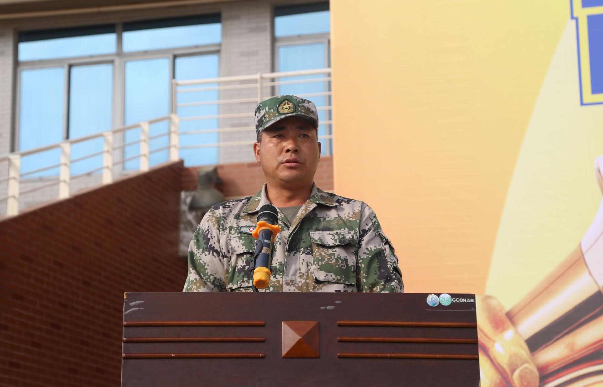 广西三军联创祺诚军训基地主任钟友平发言