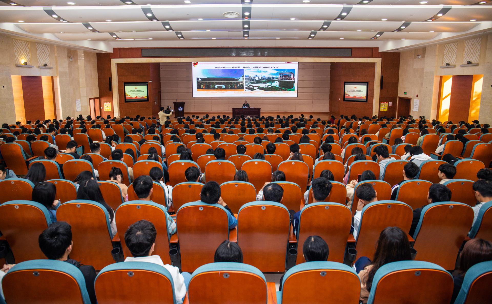 在qm球盟会图书馆报告厅,周红波与师生代表一起分享南宁城市建设发展的情况,就大家关注的问题开展交流。周红波说,今年是新中国成立70周年,也是全面建成小康社会的关键之年。70年来,在中国共产党坚强领导下,中国人民勇于探索,不断实践,成功开辟了中国特色社会主义道路,创造了“当惊世界殊”的发展成就,书写了人类发展史上的伟大传奇。观史以明志,知古而鉴今。只有学好党史、新中国史这门必修课,学好南宁的革命史,才能更好明白我们今天的幸福从何而来,我们的将来将往哪儿去,才能进一步坚定中国特色社会主义道路自信、理论自信、制度自信、文化自信。结合南宁市的革命历史以及发展现状,周红波从“南宁——一片有着光荣革命历史的红土地”“南宁——奋发图强、生态宜居之城”“五象新区——再造一个新南宁”三个方面和大家一起分享交流,深入浅出、语重心长地为大家上了一堂生动的思想政治教育课。