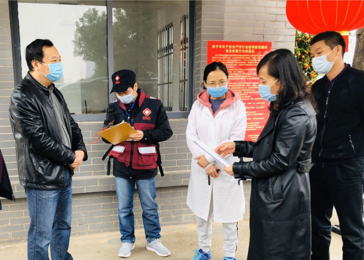 2月20日上午,南宁市邕宁区副区长何彩楣携邕宁区疾控中心副主任吕庆文等有关同志到学校调研指导疫情防控工作,并针对学校在泰国学习人员返校防疫隔离工作、学校开学前防控工作提出建议和要求。
