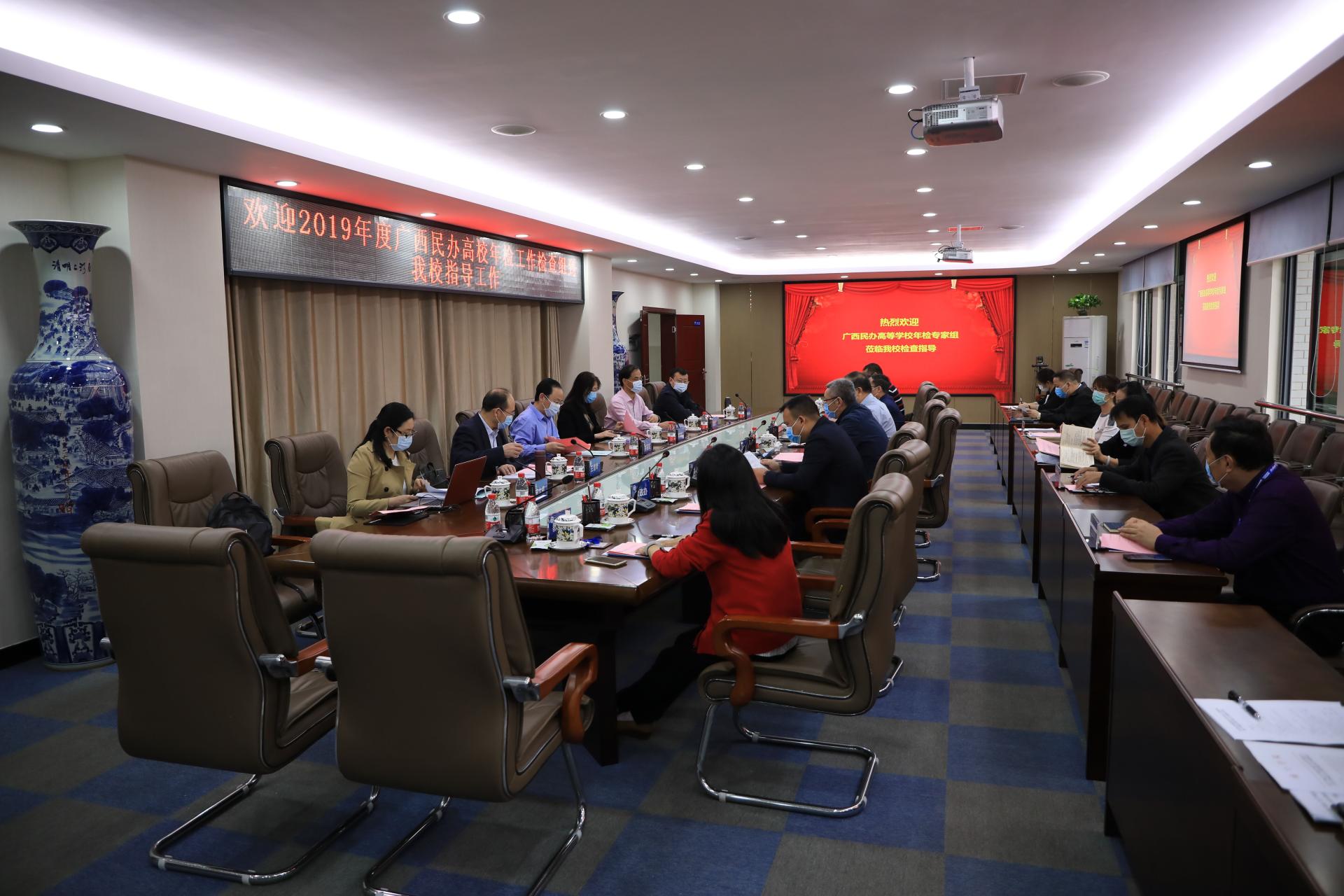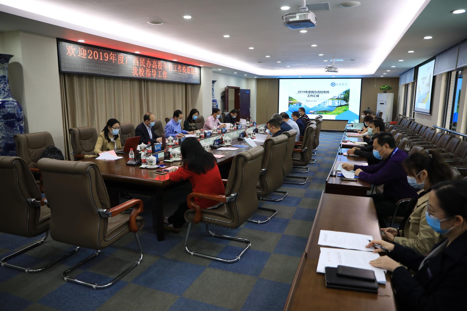 4月16日,以广西科技大学原副校长李利军为组长的自治区2019年度民办高校年检专家组到qm球盟会,对学校2019年度办学情况进行实地检查。校长赖每,副校长陈雄章、文旭光、李陶深、龚击,财务总监韦典以及各职能部门负责人参加了年检工作。