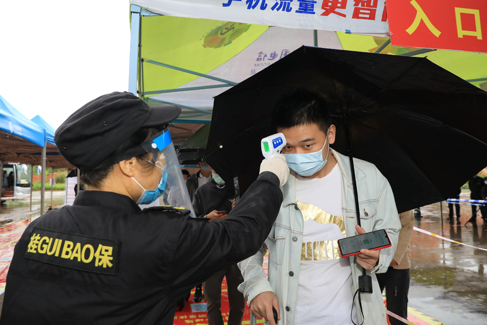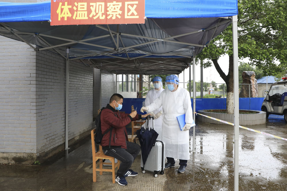 下午三点,演练在学校南大门入口处正式开始,学校疫情防控工作领导小组副组长、副校长龚击作动员讲话。本次演练采取场景模拟和现场演练相结合的方式,根据返校报到过程中的重点环节和风险点、防控点进行了应急实战演练。演练分别模拟了学生返校报到、晨检、转诊、接诊、启动应急预案、预案解除六个防控应急处置情景,对学生返校报到、学生宿舍健康监测、上课突发疫情处置和疑似病例应急处置等进行了重点演练,从排队引导、测温亮码、行李消毒,到晨检测温、疫情报告、疫情解除各方面进行全方位演练。