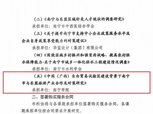 近日,南宁市科学技术协会下达了2020年南宁市科协调查研究软课题立项通知,经审定,共5个课题获得立项。其中,学校会计与审计学院卢雯君老师组织申报的《中国(广西)自由贸易区建设背景下南宁市与东盟旅游产业合作及对策研究》项目获得立项。