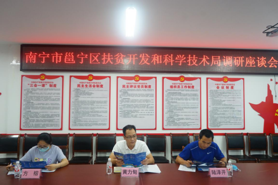 南宁市邕宁区扶贫开发和科学技术局黄力旬副局长一行到qm球盟会调研