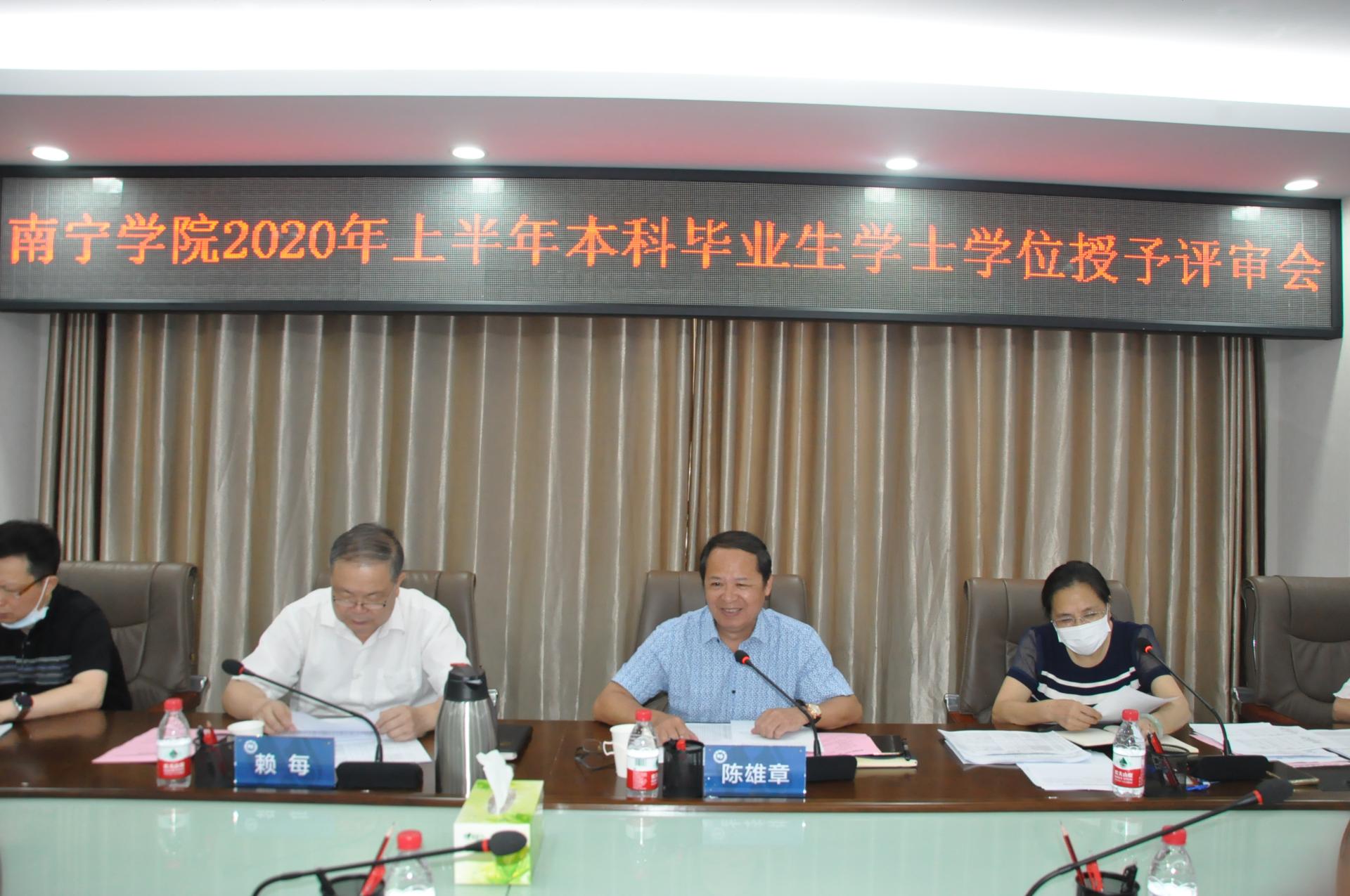 2020年6月12日上午,qm球盟会2020年上半年本科毕业生学士学位授予评审会在行政楼322会议室召开,审议2020届全日制本科毕业生和2020年上半年成人高等教育本科学位授予及相关事宜。校学位评定委员会主任、校长赖每,学位评定委员会副主任委员、副校长陈雄章,以及学位评定委员会委员共18人出席会议。