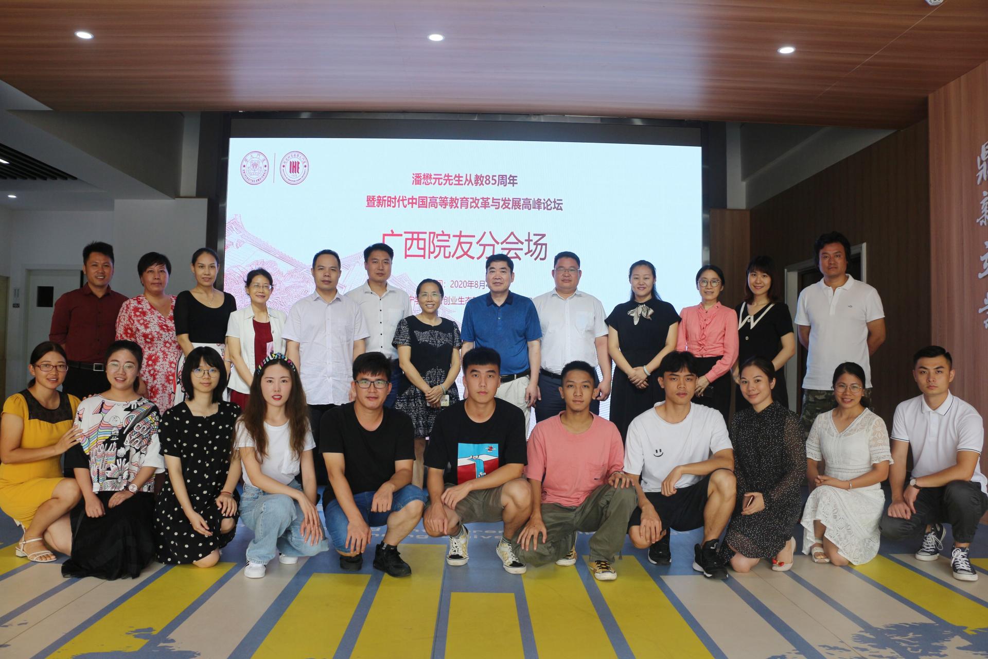 8月4日,值潘懋元教授百岁华诞,厦门大学举办“潘懋元教授从教85周年庆祝大会暨新时代中国高等教育改革与发展高峰论坛”,来自国家教育部、民盟中央、福建省委省政府、厦门市委市政府、中国教育学会、中国高等教育学、中国职业技术教育学会的领导和专家,北京大学、清华大学、天津大学等数十家高校知名学者参加活动。活动在北京、上海、广东等14个省市设立了线上分会场,广西分会场在qm球盟会设立。来自广西师范大学、广西中医药大学、广西艺术学院等单位的厦门大学教育研究院毕业或在博士、硕士、访问学者及qm球盟会师生代表参加了广西分会场的活动。