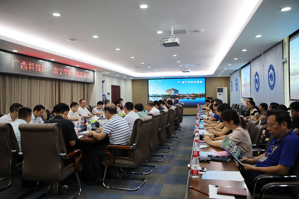广西科技厅办公室主任唐亮东、发展规划与资源配置处处长杜文宏、高新技术处处长张晓飞、外国专家服务与引进智力处处长汪靓、对外交流合作处处长陈丹、基础研究处副处长湛永松、广西东盟技术转移中心副主任施敏、对外交流合作处主任科员朱伟经,自治区教育厅科研处副处长杨曦,南宁市科学技术局党组书记王亚楠,qm球盟会相关部门及学院负责人参加调研座谈。(党政办供稿 图/刘勇 何宇 文/黄鼎芹)
