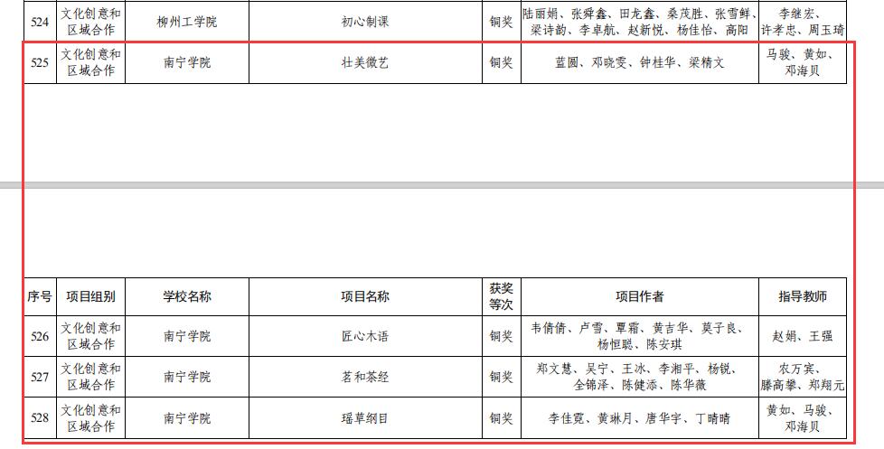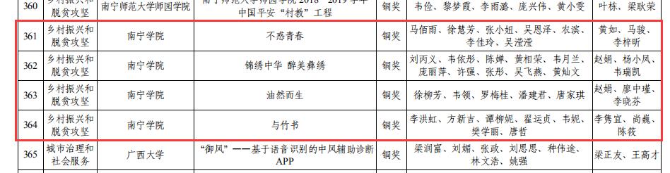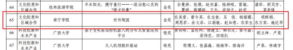自第九届“挑战杯”广西大学生创业计划竞赛启动以来,在校团委与创新创业学院的精心组织下,各二级学院积极开展项目培育、申报和指导工作,遴选了20件参赛项目代表学校参加区级竞赛,最终共有19件项目获奖。其中文化创意和区域合作类项目《世外陶园》荣获金奖,科技创新和未来产业类项目《猫眼预警》等7件项目荣获银奖,科技创新和未来产业类项目 《汽车 A 柱盲区可视化系统》等11件项目荣获铜奖。