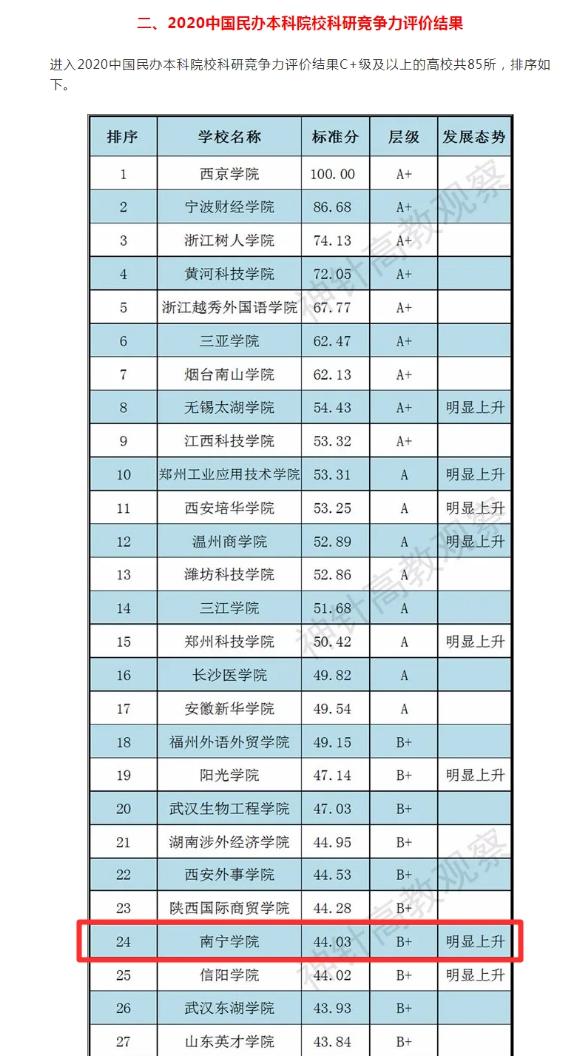 2020中国民办本科院校及独立学院科研竞争力评价研究报告》已于近日正式发布,qm球盟会位居2020中国民办本科院校科研竞争力排行榜第24位,获得科研竞争力明显上升的评价!单项分析中,特别提到:获得授权发明专利比较多的民办本科院校则有黄河科技学院、西京学院、qm球盟会等。qm球盟会标准分是44.03,层级是B+,较上一年排名提升14,发展态势较好