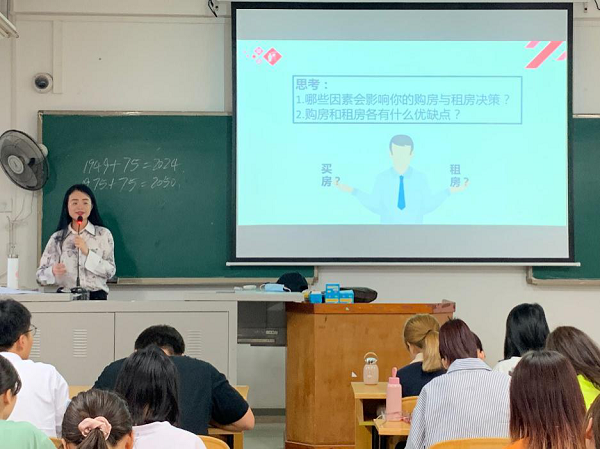本次公开课的授课课程为《个人投资理财》,授课班级为2018级财务管理2班,授课教师覃玮婷通过视频展示、经济分析、政策解读等方式,结合课程思政元素将“房地产投资规划”的内容进行了详细的讲授。覃老师在教学过程中熟练运用相关实操软件进行教学,使同学们在掌握知识的同时,在思想政治和技能上都得到了提升。课程结束之后,赵海鹰院长主持开展了沟通交流会,刘彪肯定了本次公开课的授课效果,并建议教师在课程思政元素方面可进一步深化拓展;赵海鹰院长建议教师在授课时要多深入到学生中,拉近与学生的距离感;张丽珍院长建议教师在板书设计方面可进一步优化;其他观摩老师也发表了自己的观感和评价,并提出了自己的建议。