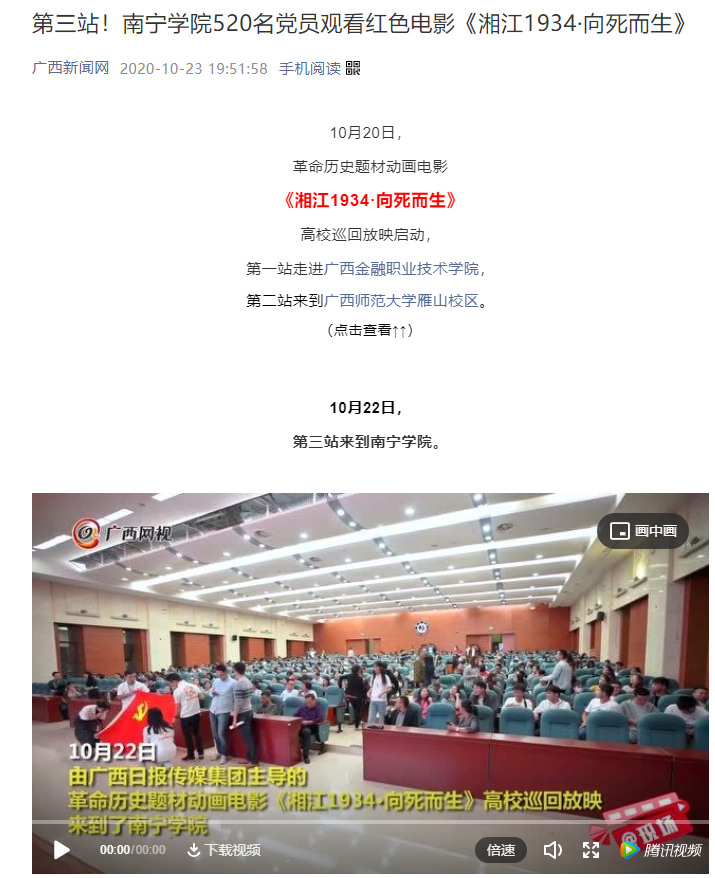 【媒体关注】广西新闻网:第三站!qm球盟会520名党员观看红色电影《湘江1934·向死而生》