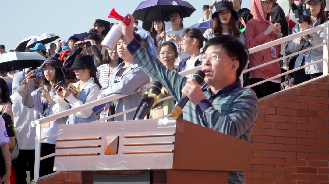 覃存民副书记在开幕式上指出,学校田径运动会是学校一年一度的体育盛事,是展示学校师生精神面貌的舞台,也是检阅师生开展体育锻炼效果的平台,希望运动员发扬“更快,更高,更强”的精神,奋勇争先、顽强拼搏、赛出水平、赛出友谊。