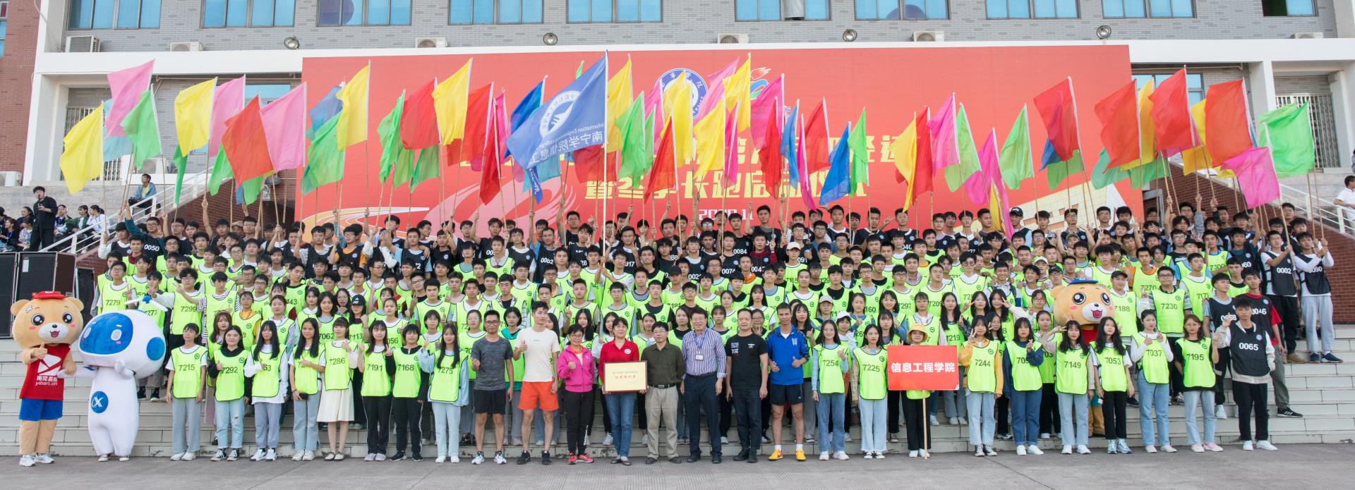 精彩的文体表演结束后,学校党委书记刘彪鸣枪发令宣布本届田径运动会暨冬季长跑活动开幕,师生代表环校起跑。在覃存民副书记和龚击副校长的带领下,1000余名运动员代表沿校园主干道进行千人环校跑。校园里奔跑中的五彩队伍犹如一条长龙,彩旗飘飘如一片彩色的海洋,让人欢欣鼓舞。