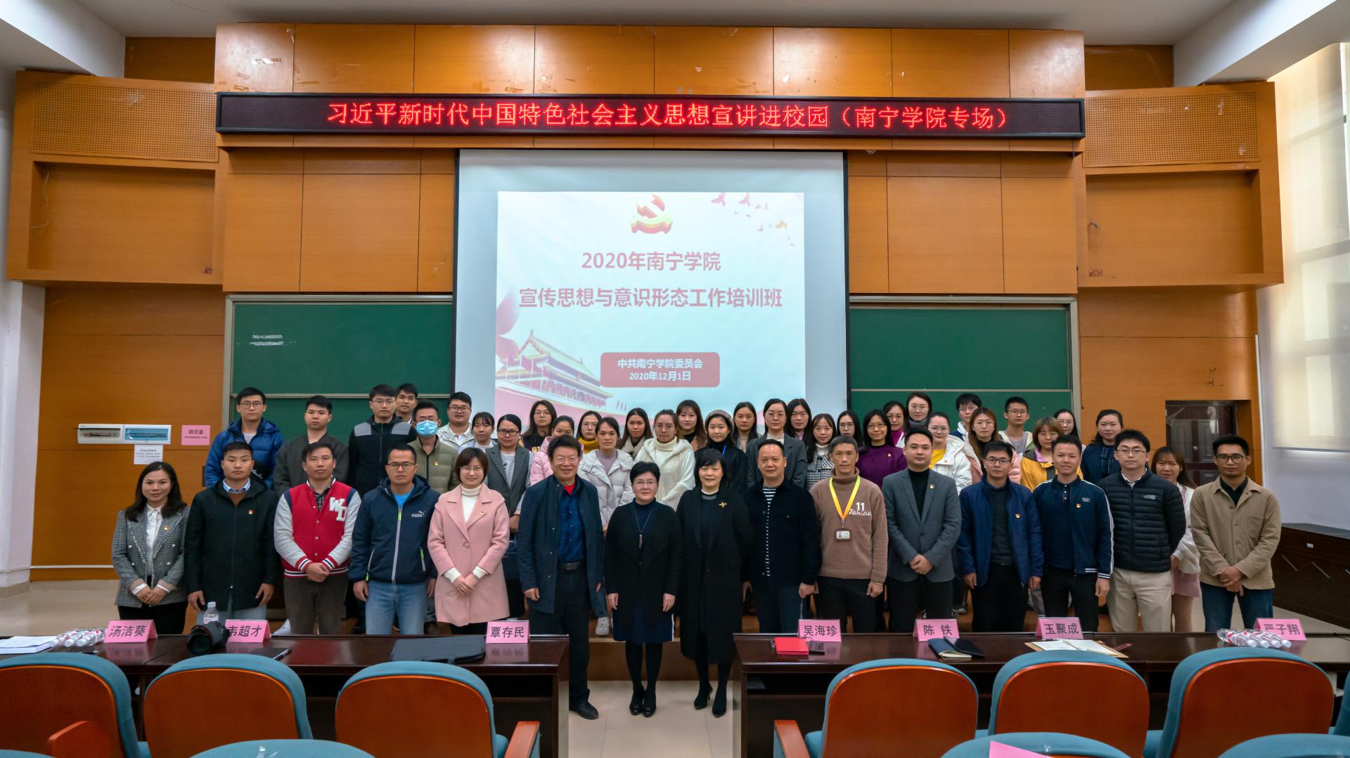 培训班贯彻落实习近平新时代中国特色社会主义思想和党的十九届五中全会精神,结合高校宣传思想与意识形态工作要求,主要围绕深入学习领会习近平总书记对广西工作的重要指示精神,提升宣传队伍“四力”开展教学。广西社会科学院党组书记、院长陈立生作“新时代广西发展的根本遵循——深入学习领会习近平总书记对广西工作的重要指示精神”专题报告会。南宁市委宣传部副部长、网信办主任冯力作《学习宣传贯彻<中国共产党宣传工作条例>精神 不断开创首府宣传思想工作新局面》专题辅导,理论结合实际为全体学员解读《中国共产党宣传工作条例》精神。技能实操培训还邀请到南宁新闻网拥有丰富媒体经验的南宁新闻网主播李琴、南宁新闻网策划部总监黄登两位记者分别作“手机摄影摄像应用及制作技巧”“新媒体环境下的新闻写作及新闻摄影进阶”主题授课。
