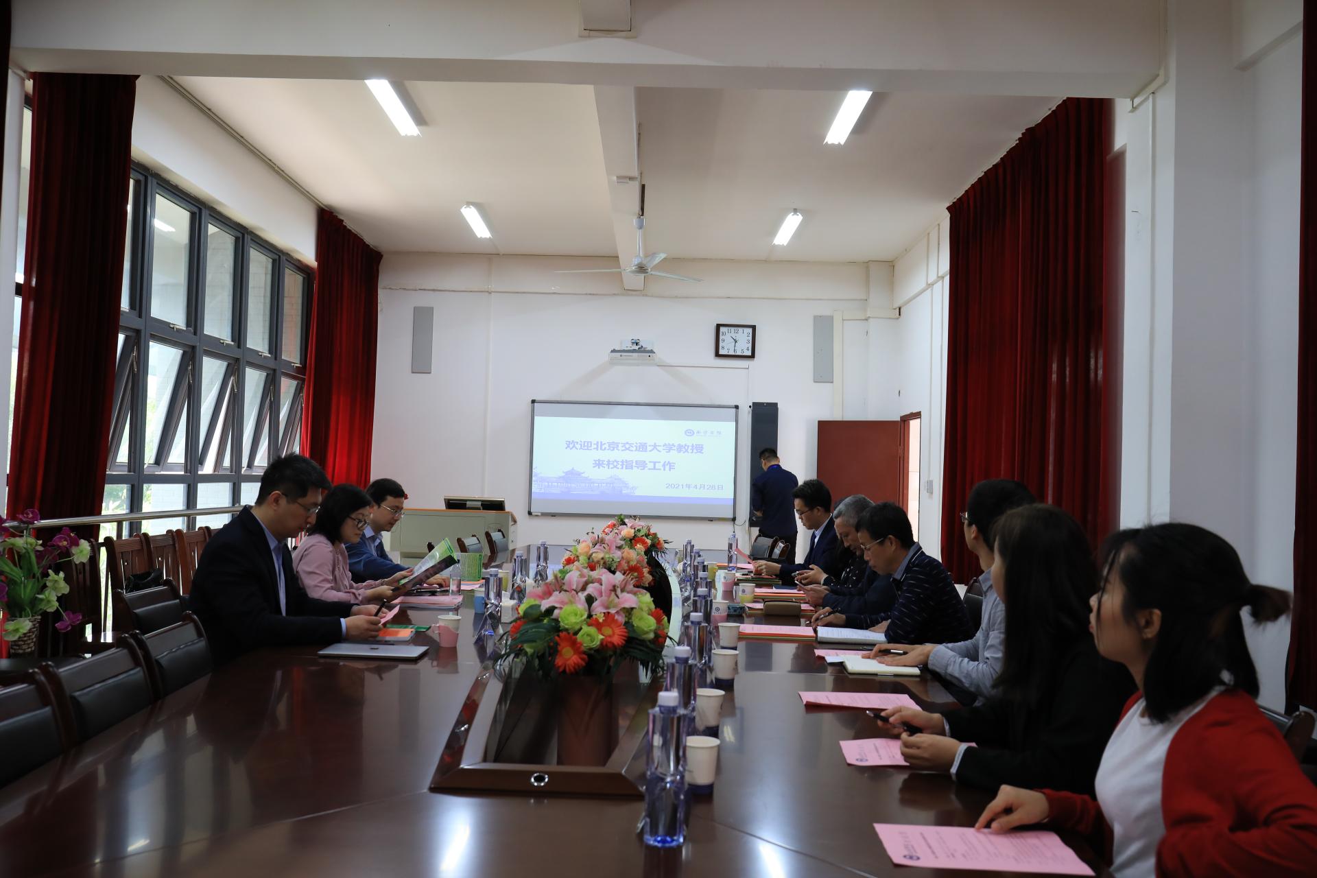 4月28日上午,北京交通大学轨道交通控制与安全国家重点实验室、轨道交通运行控制系统国家工程研究中心副主任董海荣教授,计算机与信息技术学院副院长李浥东教授以及轨道交通控制与安全国家重点实验室运控实验室副主任荀径博士到qm球盟会调研指导工作,与qm球盟会副校长文旭光、交通学院院长陈红保等领导老师,共同就如何推动中国-东盟综合交通国际联合实验室与北京交通大学之间的合作工作,以及人才培养等相关需求问题进行交流探讨。