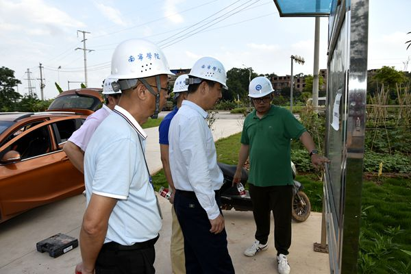 李校长一行首先到11#楼顶察看学生宿舍热水供应系统。李校长详细询问了热水储水箱的具体容积、水管布置、当前设计的热水供应量是否满足学生使用,这些问题要求后勤基建处及时与设计方及施工方对接清楚,设计参数要准确,以免出现纰漏。随后,李校长一行到楼栋各楼层视察施工进度,在宿舍楼外围现场研究宿舍楼周边规划情况。