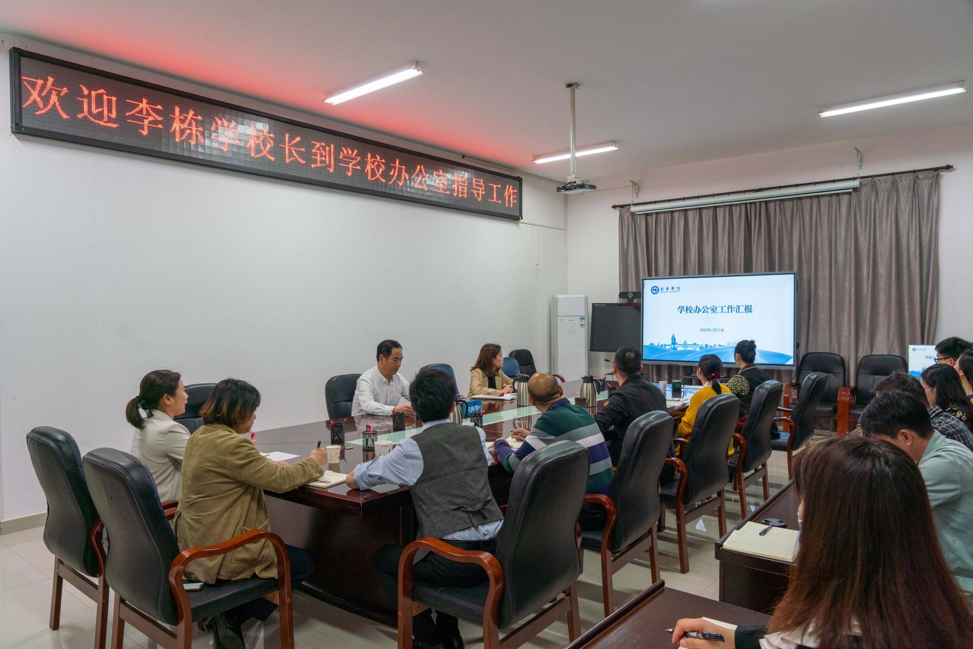 在学校办公室调研时,李栋学校长关切地了解办公室工作当前存在的困难和问题。李栋学校长指出,学校办公室工作繁重,希望办公室全体成员要不断加强学习和锻炼,着重从三个方面提升工作效能:一是要拿得起笔、开得了嘴、跑得开腿;二是要学会回看昨天、干好今天、谋划明天;三是要高站位、大格局、深思考。李栋学校长对如何进一步谋划好服务和管理工作、聚焦主题策划好宣传工作等方面提出了很好的意见和建议。在后勤处调研时,李栋学校长希望后勤全体人员都能不断发展和提升,每天都能遇到新的自己;要分工不分家,要补台不拆台,携手做好处理的工作;转变工作方式方法,多从管理者的角度去考虑工作,有谋划、有计划、有管理的规章制度,树立管理者的威信。