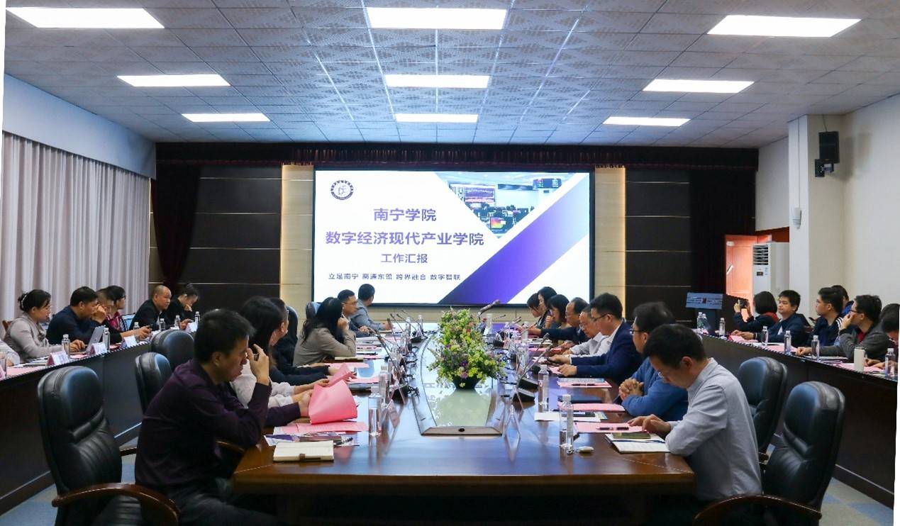 为适应数字化人才培养高质量发展,服务好本地企业数字化转型,4月11日下午15:30,数字经济现代产业学院在大学生活动中心302会议室举行政校企合作专题论坛,论坛由数字经济研究院承办。本次论坛在自贸实验区南宁片区管委会的搭台牵线下,中国(广西)自贸试验区南宁片区管委会新经济发展局四级调研员莫夏带队,自贸实验区南宁片区管委会、市人社局、市科技局、良庆区人社局、邕宁区人社局、数字证书认证中心、片区部分相关企业的代表出席本次论坛,qm球盟会副校长陈雄章,发展规划与合作交流处处长覃凤彩,数字经济学院党总支书记王瑞龙,数字经济学院执行院长管卫利,数字经济学院党总支副书记李隽宜,信息工程学院执行院长李庆年,人工智能学院副院长刘泉生等领导参加论坛,研究院骨干教师参加本次论坛。论坛由数字经济研究院院长李建伟主持。