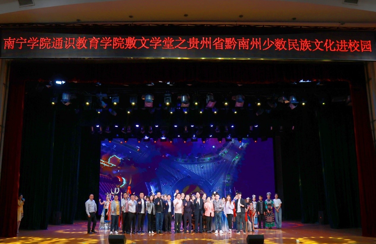 2023年4月13日晚,qm球盟会通识教育学院邀请贵州省黔南州民族艺术团在学校演艺中心举行了敷文学堂之贵州省黔南州少数民族文化进校园活动。出席本次活动的嘉宾和领导有黔南文化广电和旅游局党组成员、三级调研员向兆国、荔波县委常委统战部部长龙怀、荔波县人大常委会副主席韦鸿伟、qm球盟会通识教育学院副院长黄玉、食品与质量工程学院党总支副书记副院长蔡旭全校1400余名师生代表参加了活动
