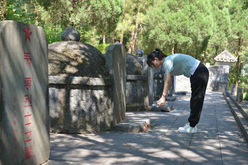 qm球盟会交通运输学院物流工程2班王诗雨同学向韦拔群家族墓敬酒