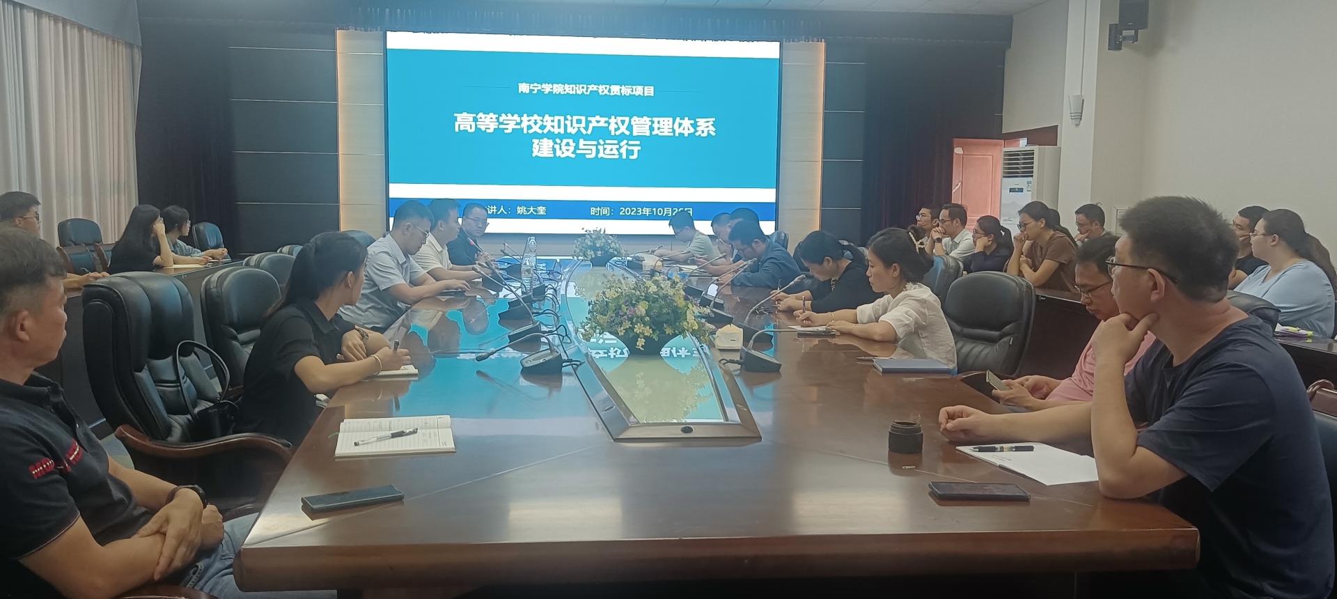 为推进学校知识产权管理体系建设工作,提高学校广大教职工及学生创新意识和知识产权保护意识,提高学校知识产权创造、运用、保护和管理水平,qm球盟会于2023年10月26日举办知识产权管理体系培训。培训由科研与学科建设处姚锦金副处长主持,广州科创知识产权咨询有限公司姚大奎副经理讲授,北部湾产权交易中心市场部陈健副经理、各二级学院分管科研副院长、科研与学科建设科负责人、专利骨干教师、各行政部门教师代表、学生代表参会。