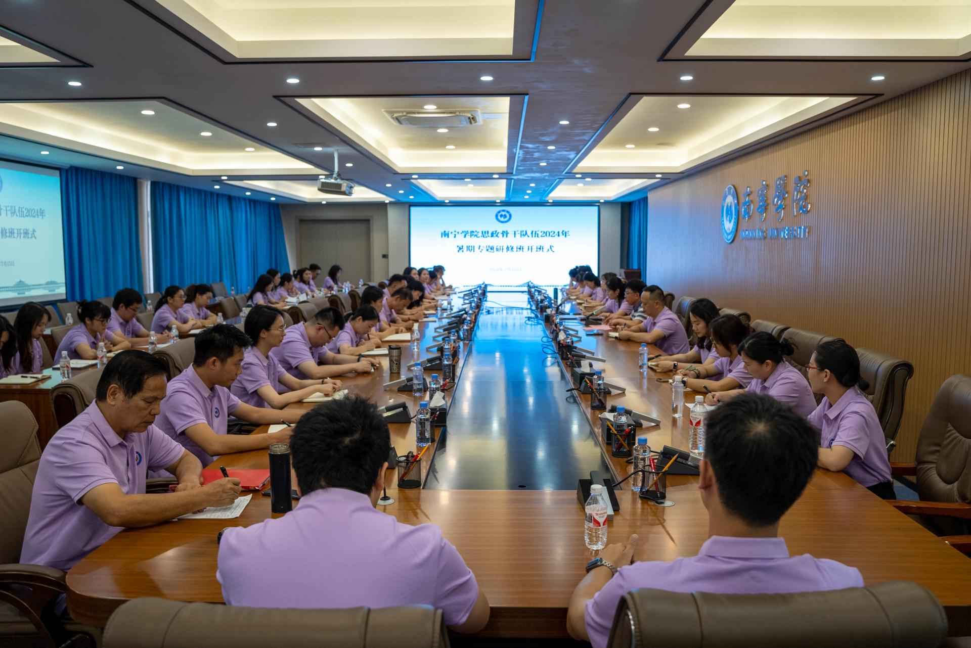 为深入学习贯彻落实习近平总书记关于学校思政课建设的重要指示精神,进一步提升学校思政骨干队伍的综合能力,坚持问题导向、目标导向、效果导向相统一,全面推动学校大思政队伍工作的高质量发展,7月15日—22日,学校马克思主义学院联合校党委宣传部举办思政骨干队伍2024年暑期专题研修班,全体思政教师及宣传骨干代表共53人参加研修。