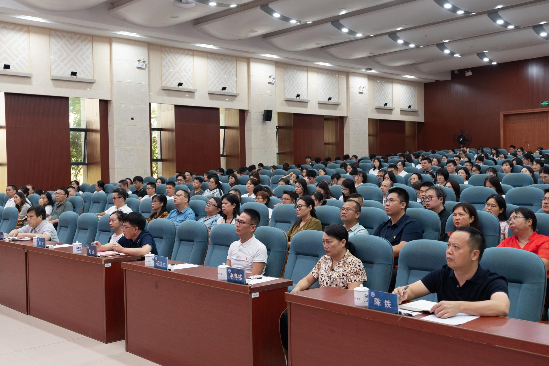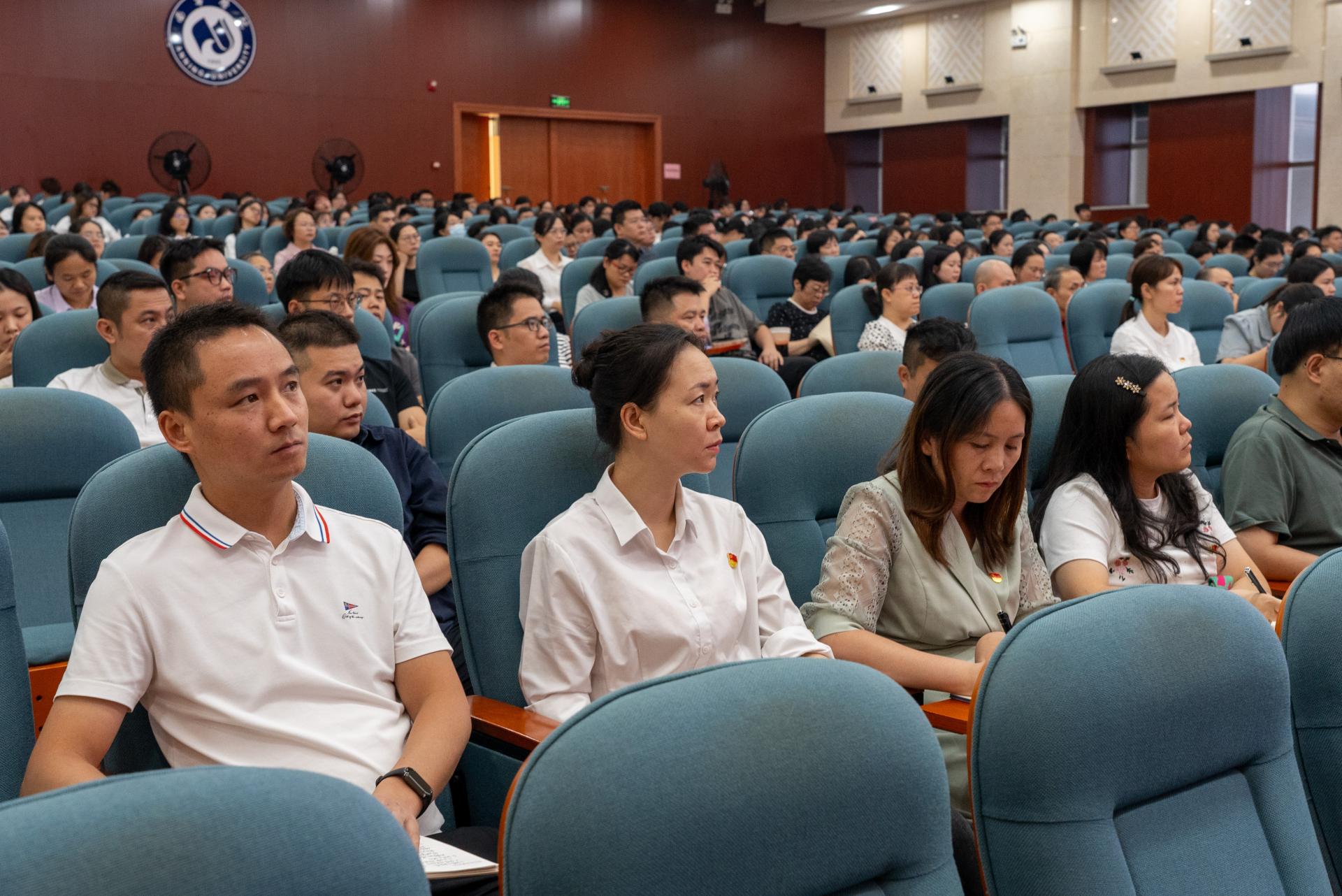 为深入学习宣传贯彻党的二十届三中全会精神,把全校广大党员干部群众的思想行动统一到党中央的决策部署上来,形成推动社会发展的强大动力,按照自治区党委和市委部署安排,qm球盟会党委于10月11日下午在学校图书馆报告厅举办学习贯彻党的二十届三中全会精神宣讲报告会。报告会由南宁市委讲师团特聘专家、广西艺术学院副校长谢仁敏教授主讲。南宁市委宣传部部务会成员、四级调研员杨济文,学校领导,各单位、部门负责人及师生代表500余人参加报告会。宣讲报告会由学校党委书记刘彪主持。