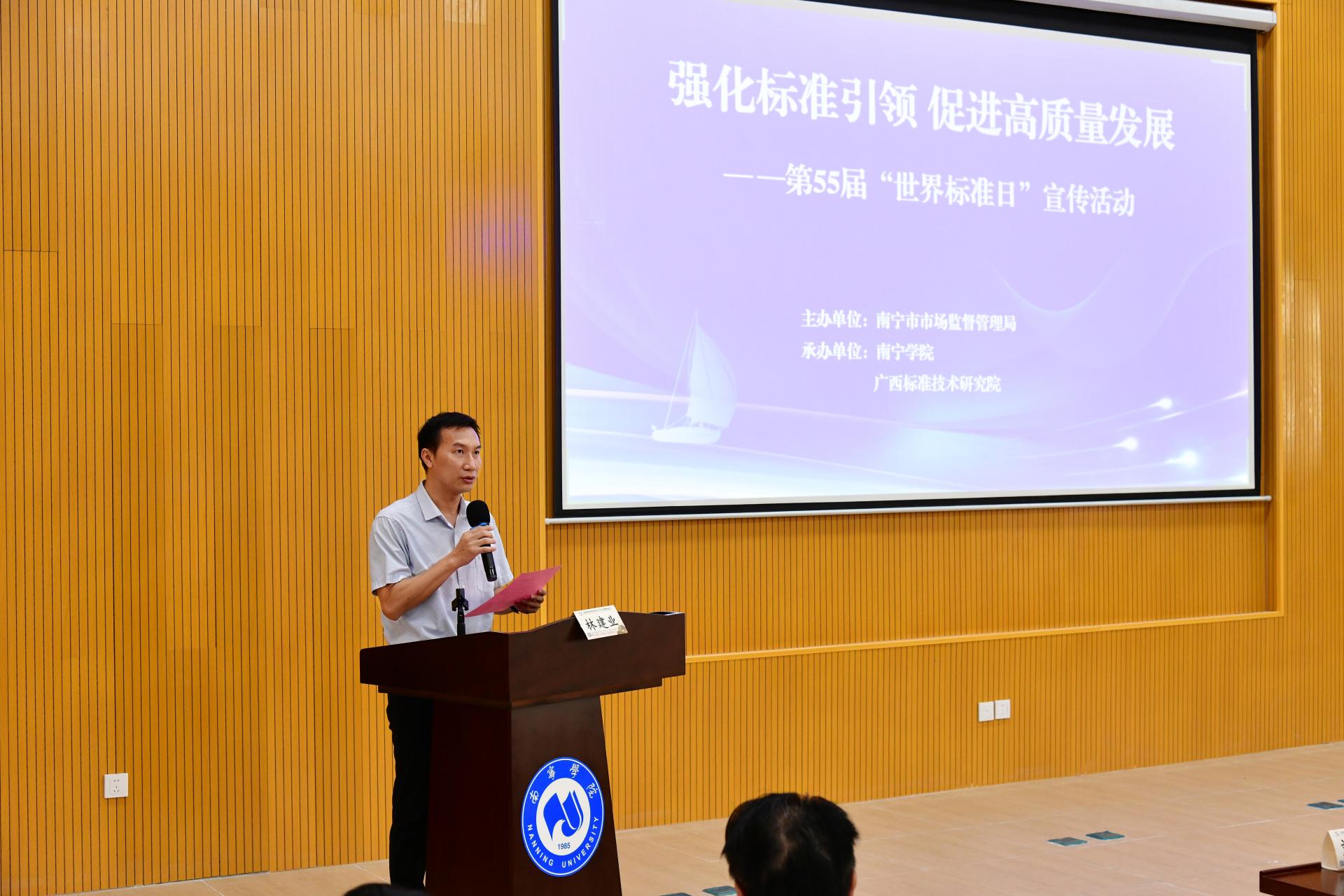 广西标准技术研究院副院长林建业宣读世界标准日祝词