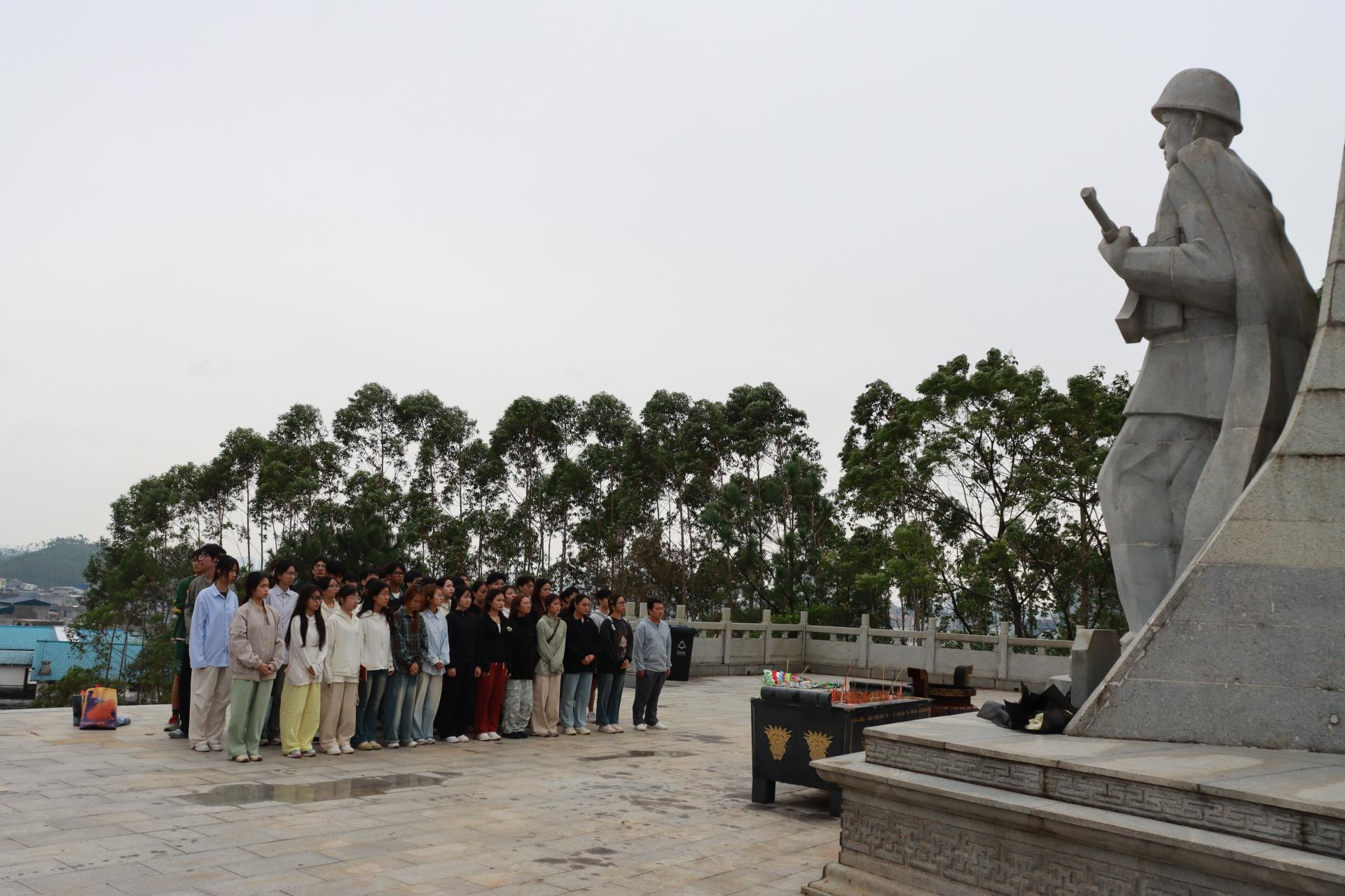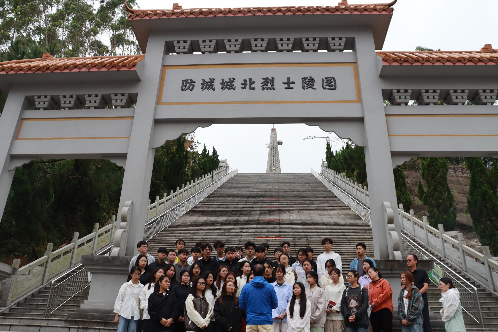 本次社会实践最后一站,课程组的师生们怀着沉重而崇敬的心情,缓缓踏上防城城北烈士陵园的台阶。在这个静谧而庄重的地方,全体师生在烈士碑前集体默哀、三鞠躬致敬、敬酒上香,以最深的敬意和最浓的怀念,向长眠于此的英雄们表达无尽的哀思。陈雄章教授向师生们详细讲述了那段硝烟弥漫的历史背景、战斗经过、战役意义以及烈士们的英雄事迹。这些烈士们为了保卫祖国的边疆安宁,义无反顾地投身战场,他们抛头颅、洒热血,用生命谱写了一曲曲壮丽的英雄赞歌。听着陈雄章教授的讲述,同学们心中涌动着对烈士们的敬仰之情,每一个人都深刻体会到,正是这些英勇的烈士们,用鲜血和生命铸就了今天的和平与繁荣。在这里,每一位师生都接受了一次心灵的洗礼,今后将以英烈为榜样,传承爱国精神,为国家的未来贡献自己的力量。