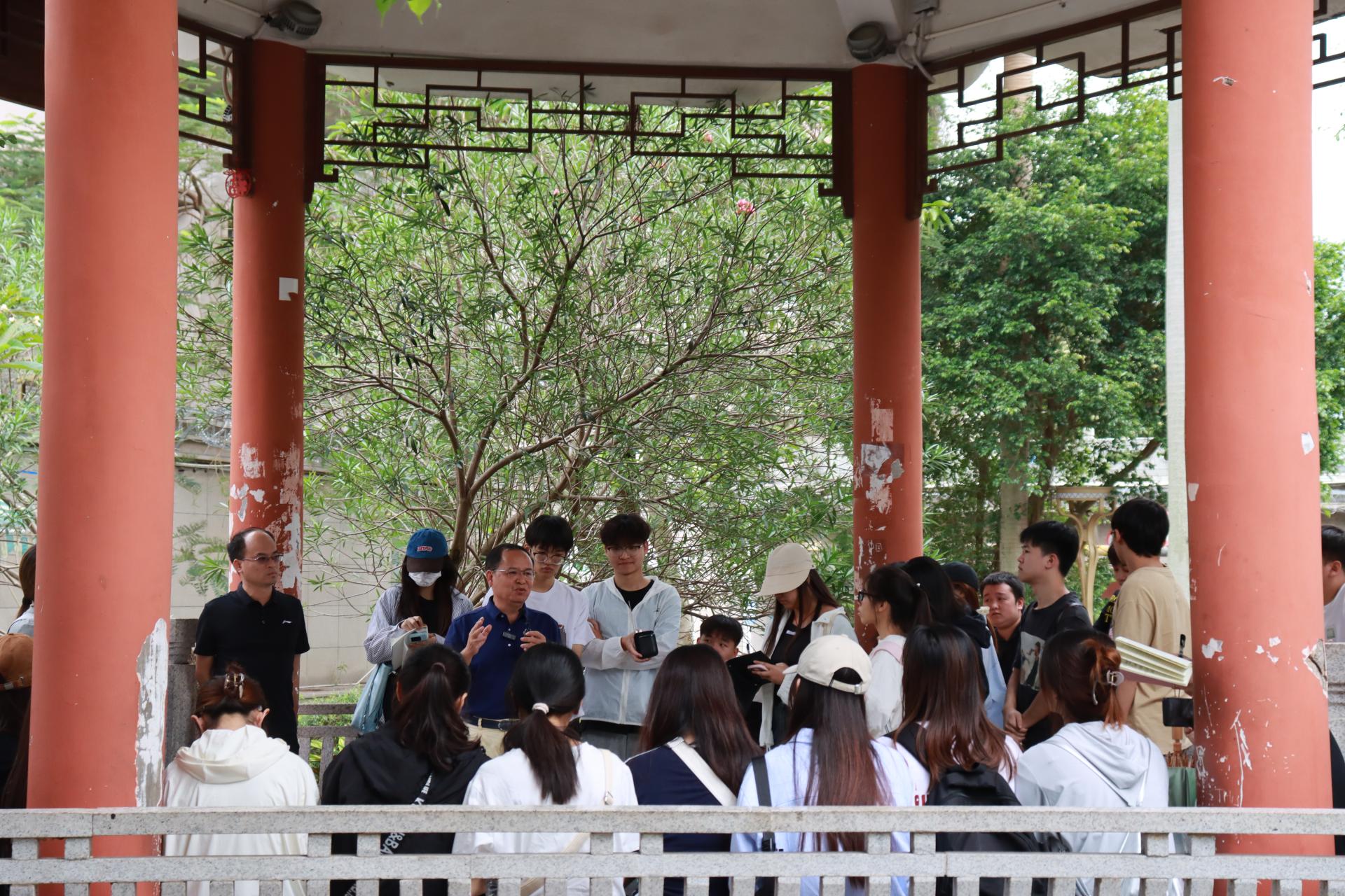 在10月27日的晨光中,课程组的师生们在陈雄章教授的带领下,踏上了探寻防城区江山乡白龙尾半岛南端的历史课堂。同学们来到了白龙炮台,这是一座始建于山丘之巅的军事要塞,由白龙、银坑、龙珍、龙骧四座炮台组成,被誉为“龟蛇守水口”的坚固屏障。陈雄章教授生动地讲述了白龙古炮台的历史,它不仅是海防线上的一道坚实防线,更是见证了中法战争时期国家海防和边防的重要性的历史遗迹。在白龙古炮台,陈雄章教授深情回顾了防城港从清朝时期的国防前哨到现代西部陆海新通道、广西开放开发前沿地带的演变历程,让师生们深刻感受到这座城市的历史基因和时代变迁。此时,王慧霞同学和蒋荣玉同学面朝大海,以一曲《我和我的祖国》表达了对海岛女民兵坚韧不拔、保卫家园精神的赞美。随后,师生们来到了防城港的“边陲明珠”,陈雄章教授详细讲解了这座城市的由来,以及它如何从一个小渔村发展成为今天的现代化港口城市。在感受防城港深厚的历史底蕴的同时,师生们也目睹了这座城市向海经济发展的蓬勃活力,体会到了防城港作为我国对外开放重要窗口的使命与担当。