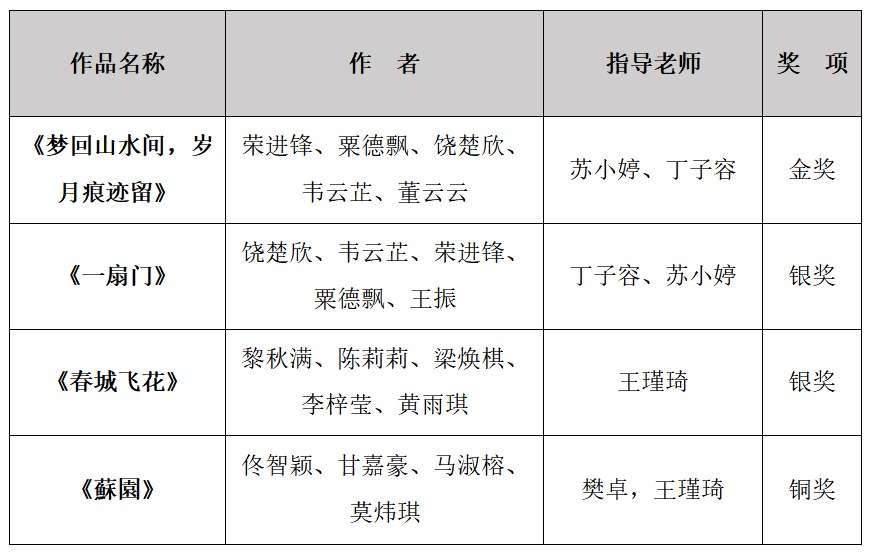 1 获奖作品及奖项信息