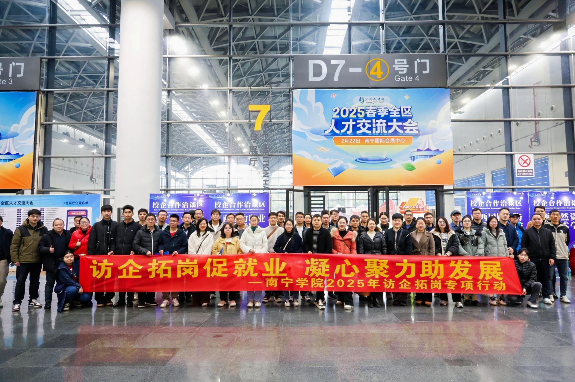 为深入贯彻落实党中央、国务院“稳就业”“保就业”决策部署,搭建用人单位与毕业生之间的高效对接平台,2月22日,由广西人才市场主办的2025年春季全区人才交流大会在南宁市会展中心盛大举行。学校高度重视此次人才交流大会,积极组织 72 名教师以及 200 余名毕业生参会,参与此次活动的教师来自多个关键岗位。其中包括:教务处副处长、学工处副处长、二级学院教学副院长、教研室主任、专业负责人、毕业班辅导员、就业管理人员,以及教务处工作人员等,为学生求职就业提供全方位的指导与支持。