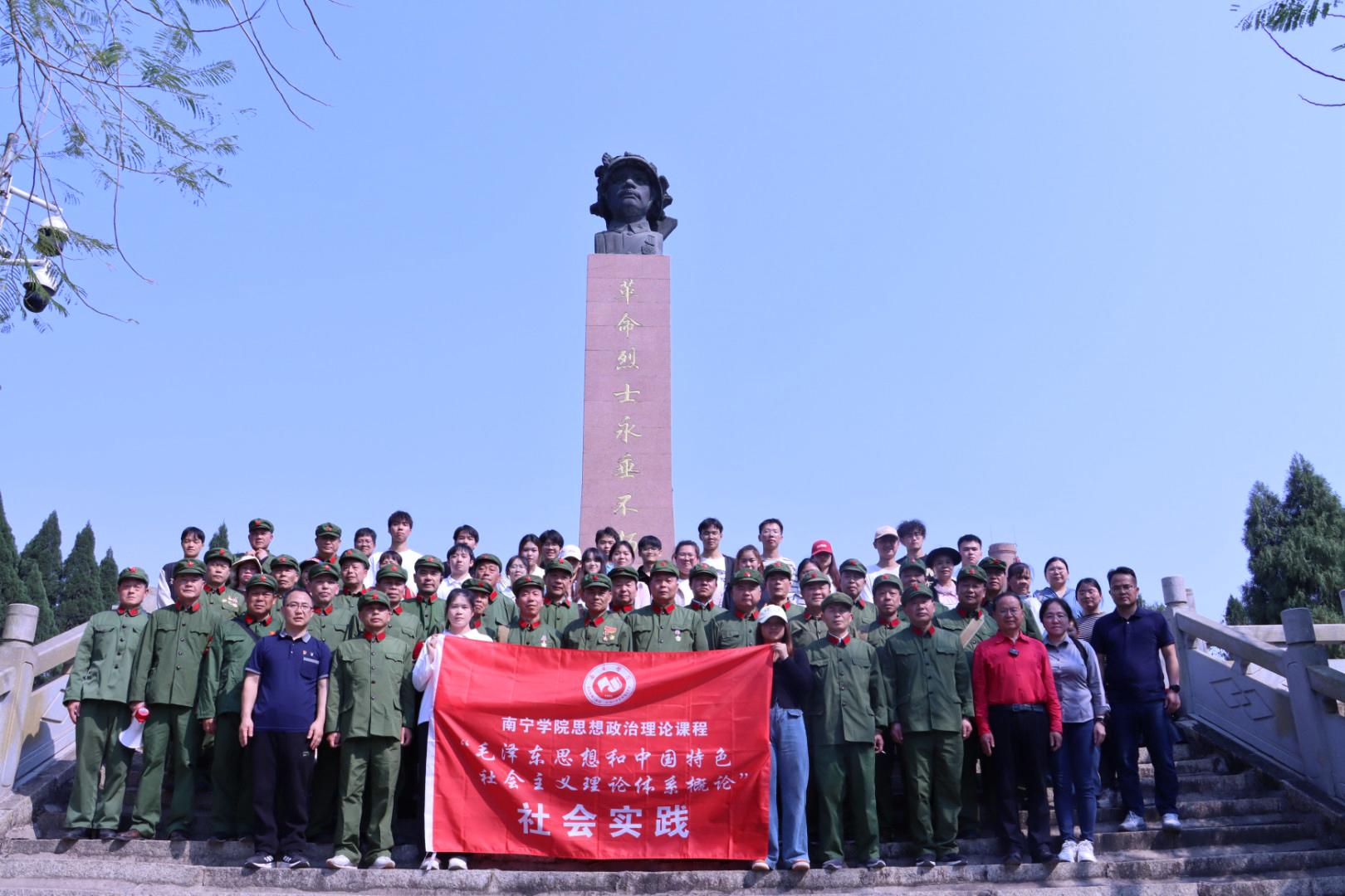 为弘扬英雄精神,庚续红色血脉,3月23日,马克思主义学院“毛泽东思想和中国特色社会主义理论体系概论”课程团队联合“社会实践(传承英雄正气新体验)”教学团队,组织32名师生赴凭祥市开展“英魂忠骨伴我走边关”实践教学活动,通过实地研学、祭扫英烈、口述历史等方式,在匠止烈士陵园、南山烈士陵园、法卡山英雄纪念碑园开展沉浸式教学。