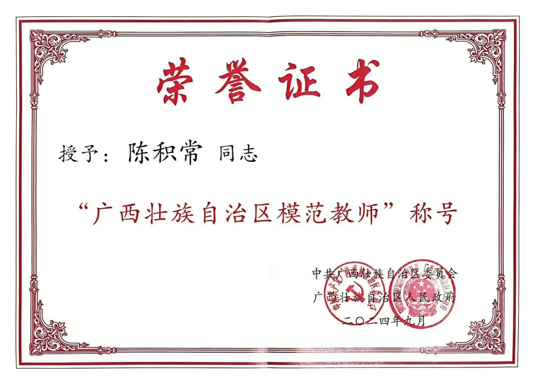 信息工程学院副院长陈积常教授被授予“广西壮族自治区模范教师”称号