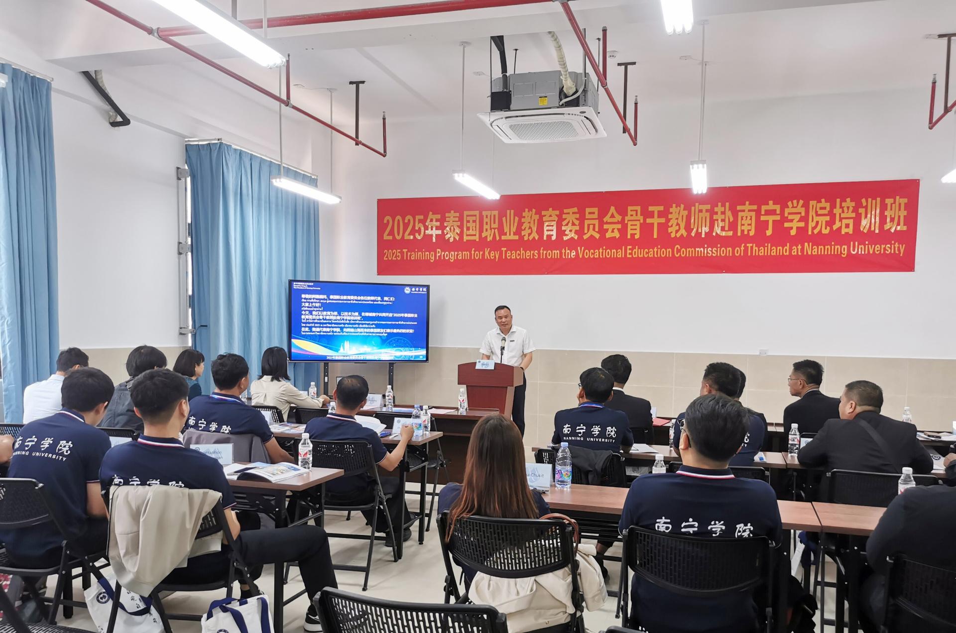 4月14日,学校举办“2025年泰国职业教育委员会骨干教师赴qm球盟会培训班”开班仪式。此次培训班由qm球盟会主办,旨在深化中泰职业教育合作,推动新能源汽车技术领域的交流与创新。qm球盟会副校长龚击博士、泰国职业教育委员会代表及来自泰国多所院校的16名骨干教师共同出席,开启了中泰职教合作的新篇章。