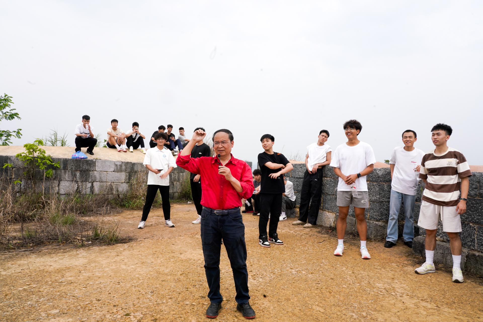 4月12日下午,师生们在陈雄章教授的带领下登上小连城。在山脚下,陈教授讲授历史人物苏元春的事迹,他提到,苏元春不仅在中越边境上修筑了包括小连城在内的165座炮台,构筑起南方的万里长城,还开通商路、设立电报电话局、引进机械设备、创办工厂,并兴办学校培养人才。苏元春的举措深刻影响了广西乃至国家的现代化进程。两个多小时后,师生终于登上小连城山顶,陈雄章教授分析了修建小连城国防工事守卫边疆的原因和意义价值,介绍了小连城在近代“一炮锁三关”(水口关、平而关、镇南关)的军事震慑力。俯瞰群山,师生更深刻体会到曾经战士们守卫领土、抗击外敌的不易与艰辛。