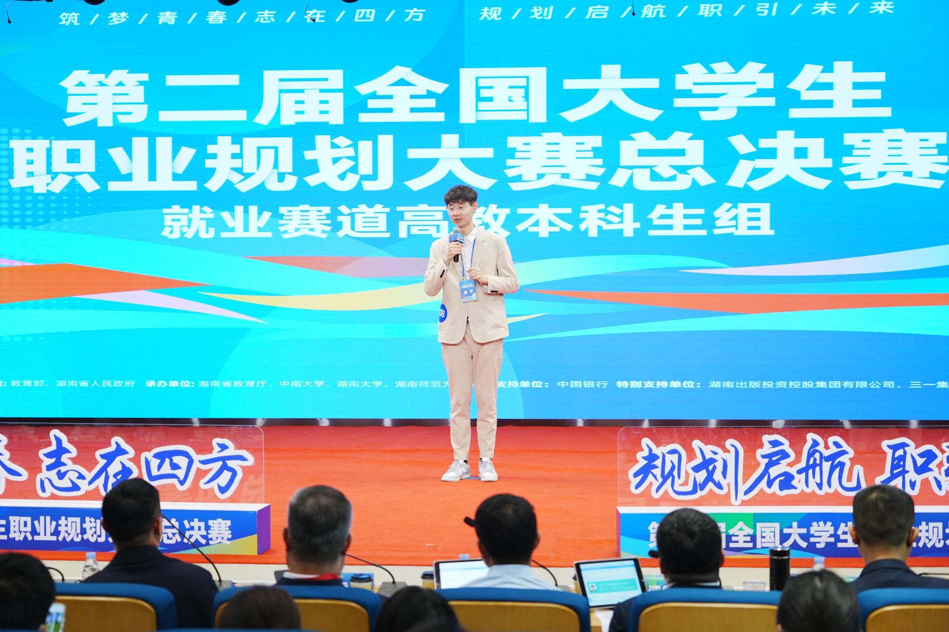 马啸飞同学在第二届全国大学生职业规划大赛总决赛现场