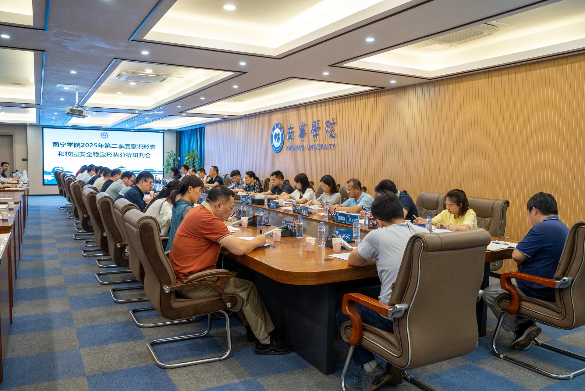 为切实保障“五一”假期及第二季度校园意识形态和校园安全稳定工作,4月30日下午,学校在行政楼400会议室召开2025年第二季度意识形态和校园安全稳定形势分析研判会。学校党委书记刘彪,党委副书记、副校长韦粤桂,学校警务联络官刘平,各二级学院党委(党总支)书记,各单位、部门意识形态和校园安全稳定工作分管领导参加会议。