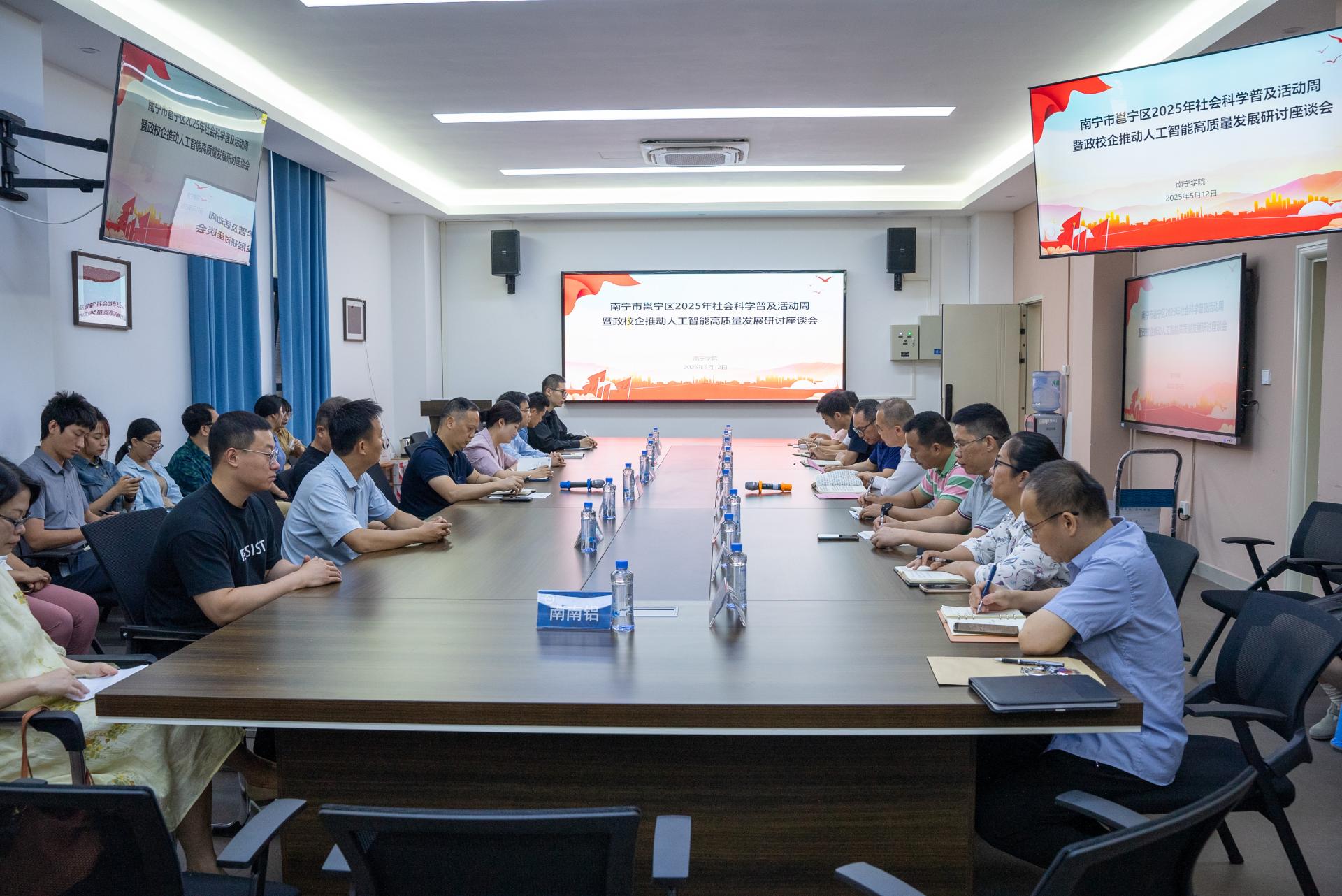 为加强社会科学普及,促进政校企三方深度合作,推动邕宁区产业发展,5月12日,qm球盟会与邕宁区党委宣传部、邕宁区社科联联合开展了以“推动人工智能高质量发展 推进中国式现代化邕宁实践”为主题的邕宁区2025年广西社会科学普及活动。参加会议的人员有邕宁区委常委、宣传部部长韦琨,qm球盟会校长助理、党委宣传部部长陈铁,科研与学科建设处张艳雯处长,以及邕宁区社科联、邕宁区发展改革和科学技术局、邕宁区教育局、邕宁区经济贸易与信息化局、邕宁区人力资源与社会保障局、邕宁新兴产业园区管理委员会、广西申龙汽车制造有限公司、南南铝业股份有限公司等政府企业代表、qm球盟会社科类学院师生代表参加活动。
