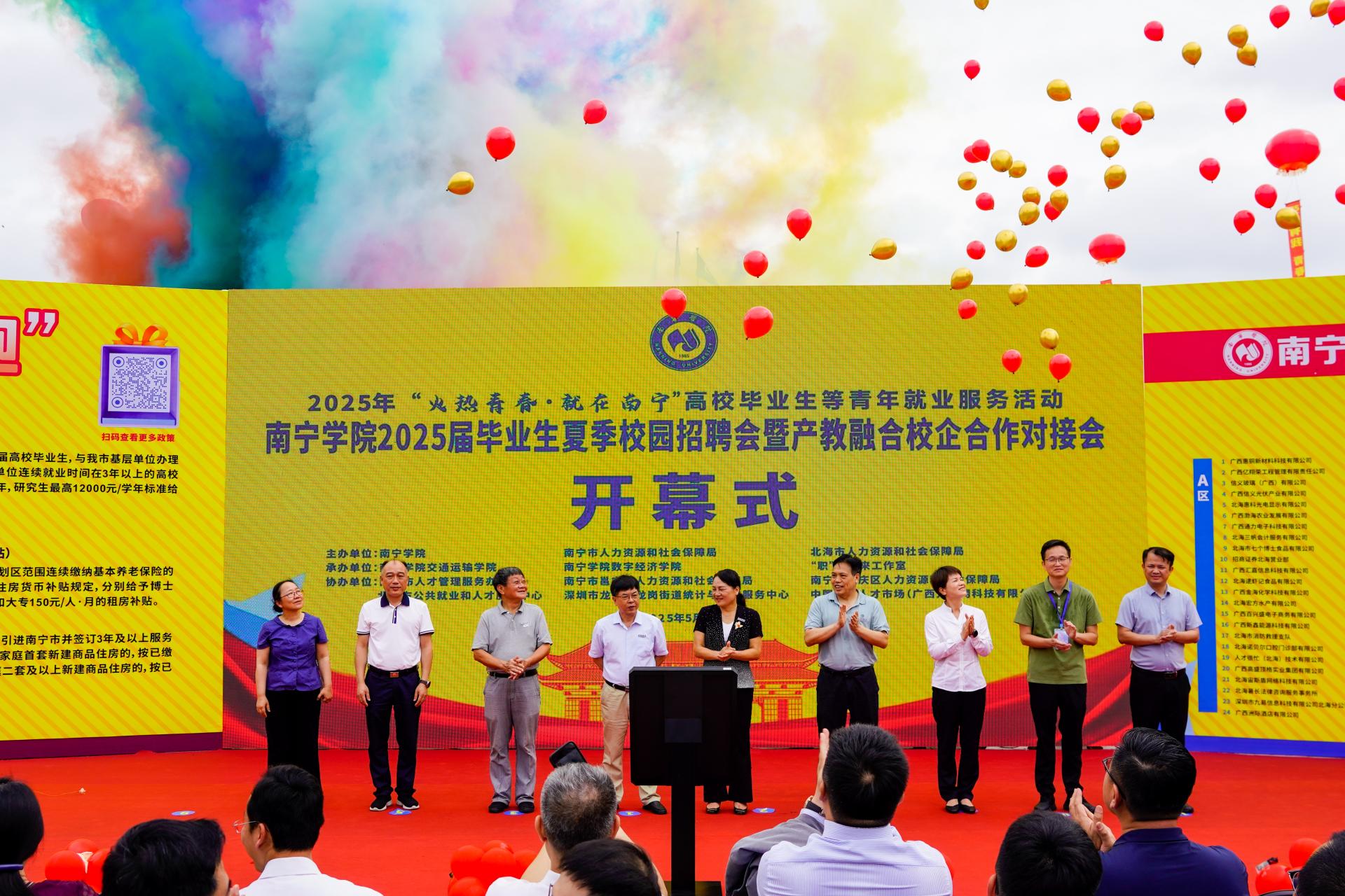 为了搭建企业与毕业生直接对接平台,深化校企合作与产教融合,构建“人才共育、成果共享”的可持续合作生态,qm球盟会于5月20日在校行政楼广场举办2025届毕业生夏季校园招聘会暨产教融合校企合作对接会,这是学校连续第5年在5月20日举办毕业生夏季校园招聘会。学校党委书记刘彪,党委副书记、副校长韦粤桂,副校长李陶深、龚击、王宁章以及各部门、二级学院负责人参加招聘会开幕式。开幕式由学校副校长龚击主持。招聘会吸引了百余家知名企业、行业代表及2025届千余名毕业生参与,现场气氛热烈。