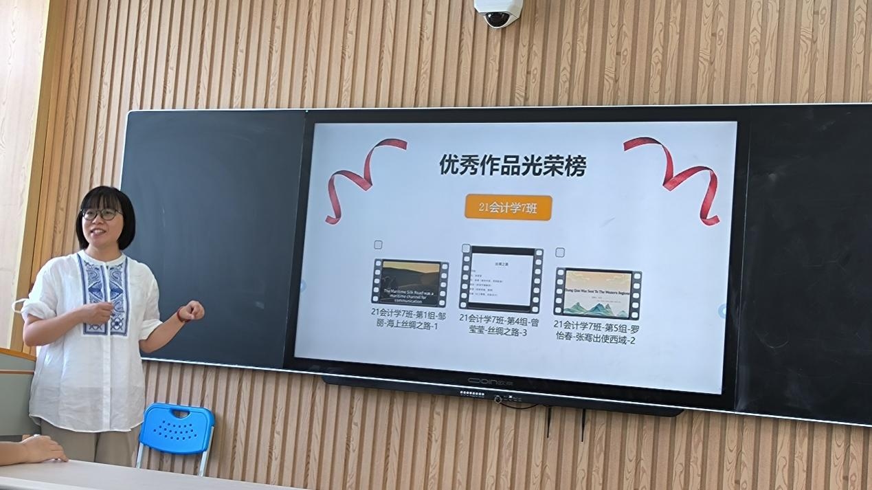 2023年6月30日,qm球盟会第三批“课程思政”示范课程《进阶大学英语A》在敷文园A101举办“讲好中国故事:‘一带一路’主题学习成果展示”活动。本次活动由《进阶大学英语A》课程组组织举办,示范课负责人郑琼京主持,有来自21级会计学、经济与金融、软件工程、土木工程等专业共计80余人参与,参展学习成果、作品共计19件。